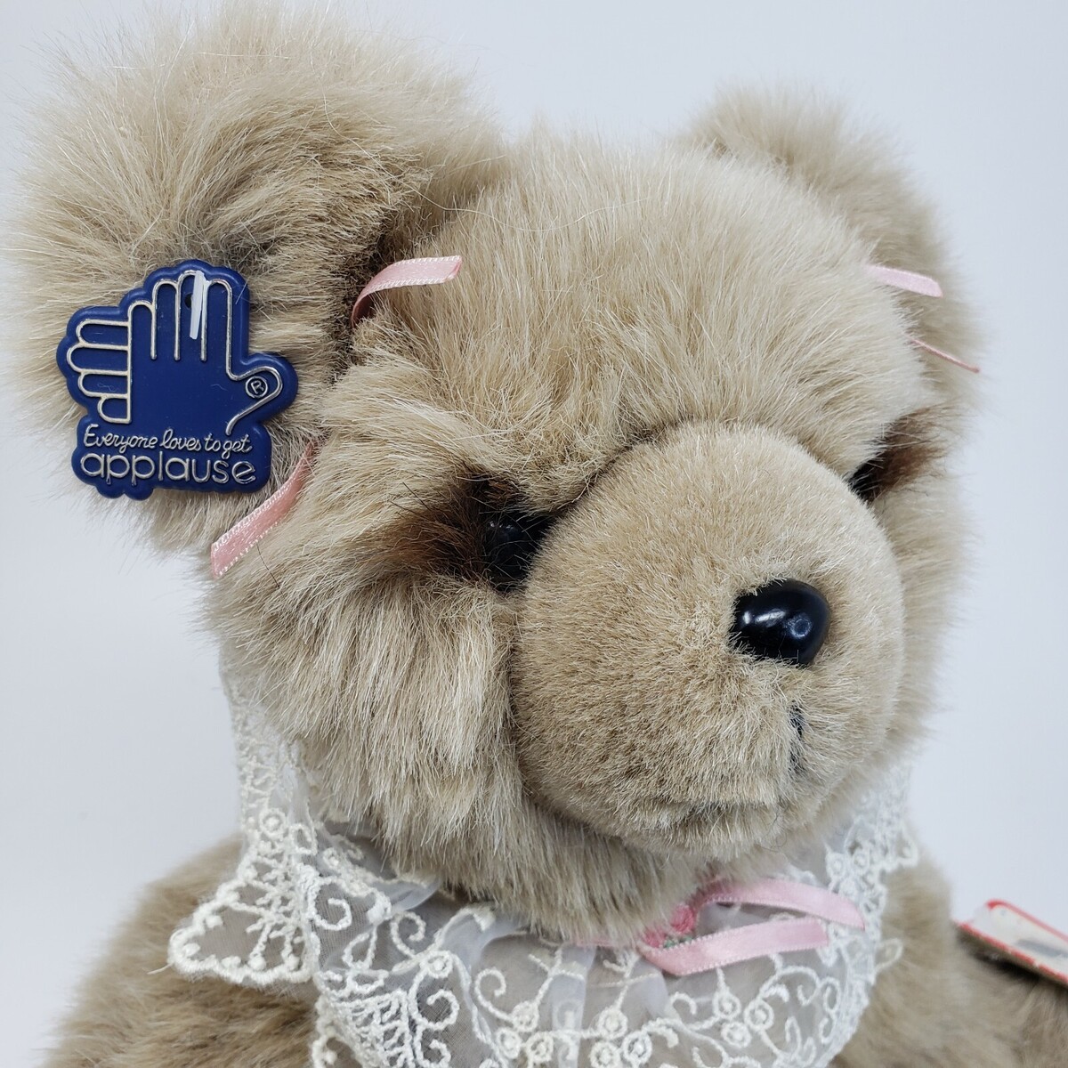 APPLAUSE VINTAGE AMANDA JOINTED BROWN TEDDY BEAR COLLAR STUFFED ANIMAL TOY W TAG