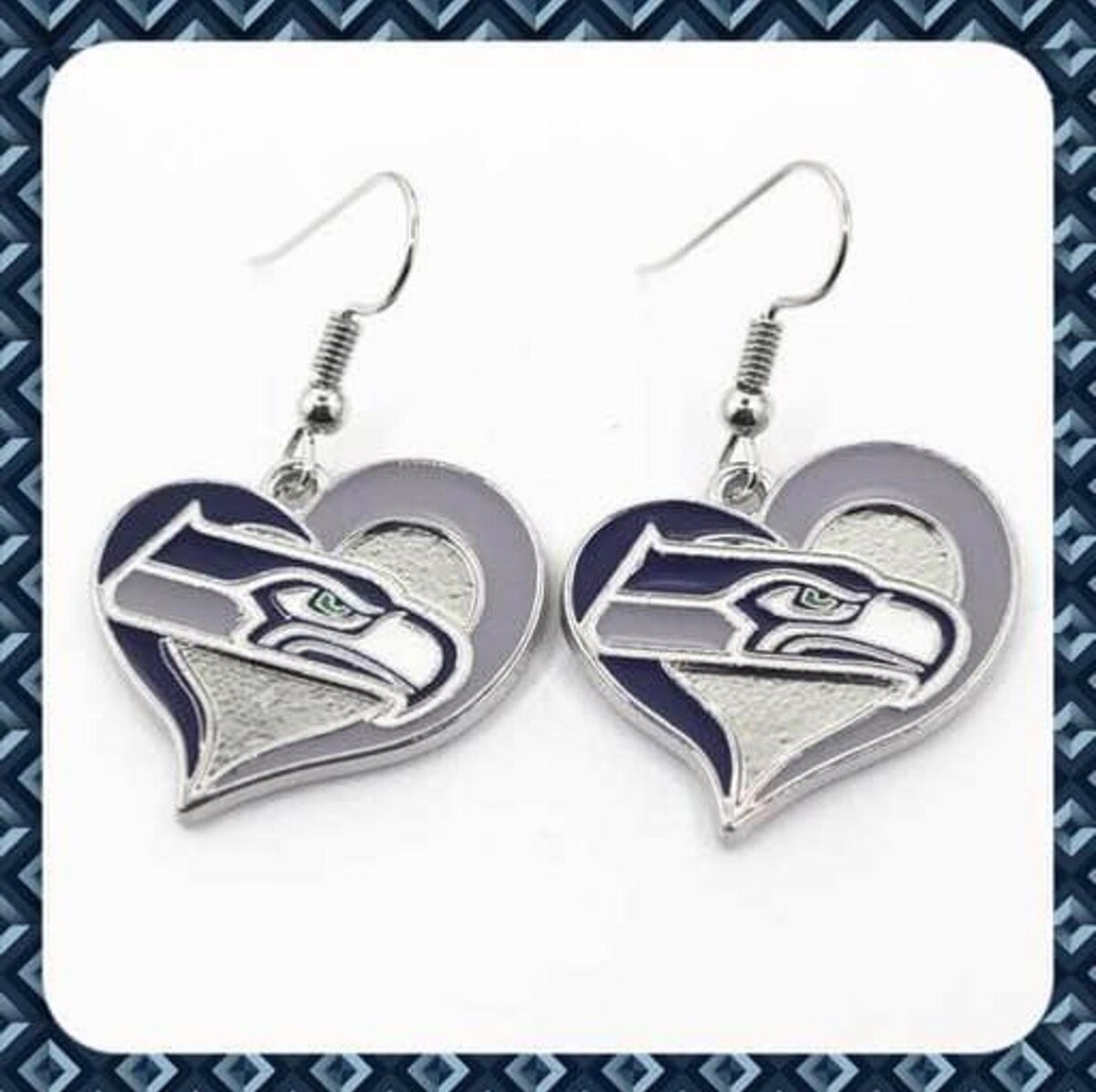Seattle Seahawks Dangle Heart ❤️ Earrings NFL Football Jewelry