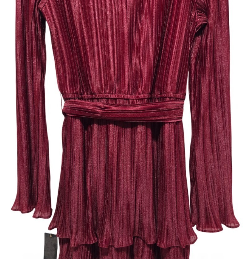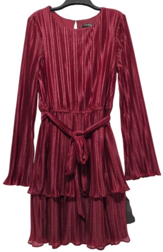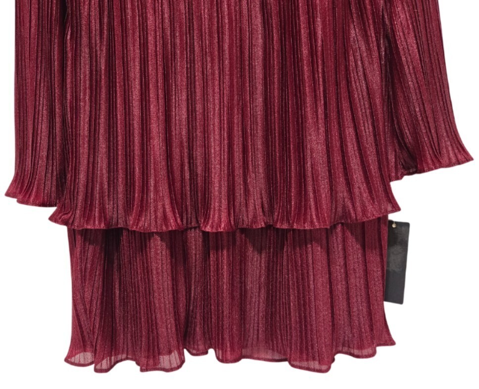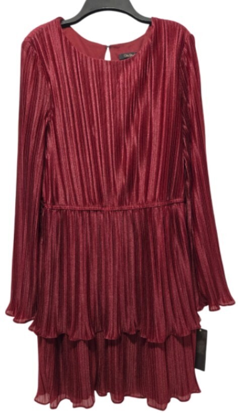 City Studio Women Juniors Red Chiffon Tiered Formal Sheath Pleated Dress (L) NWT