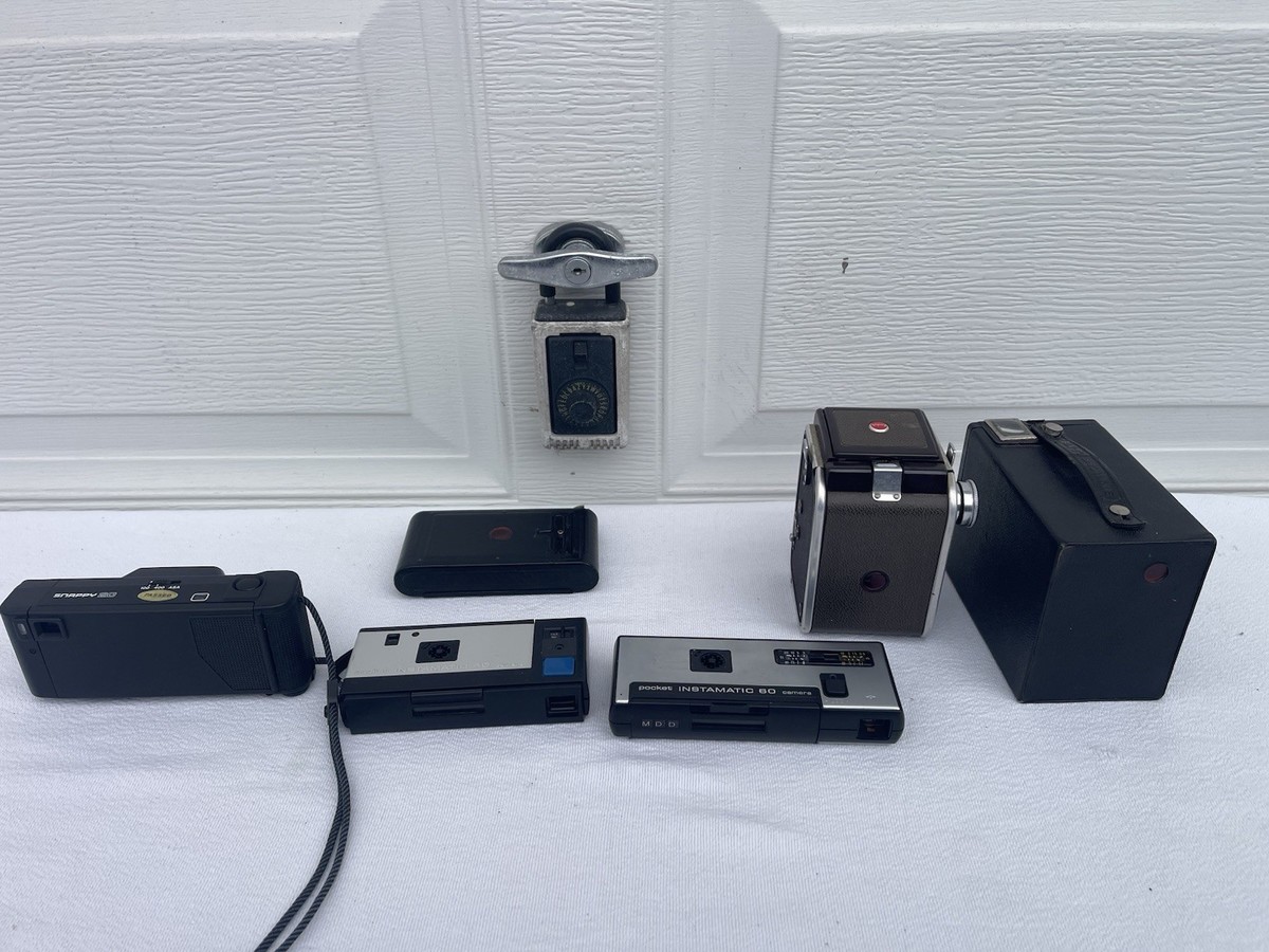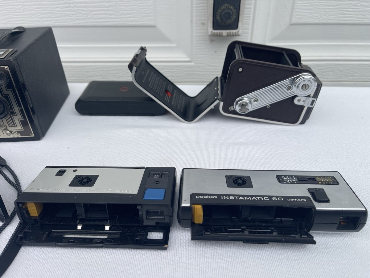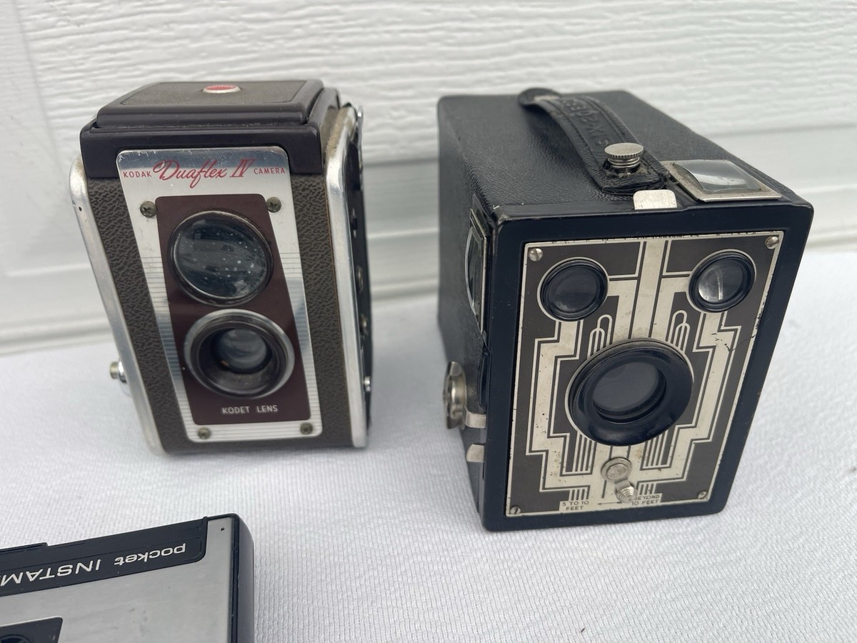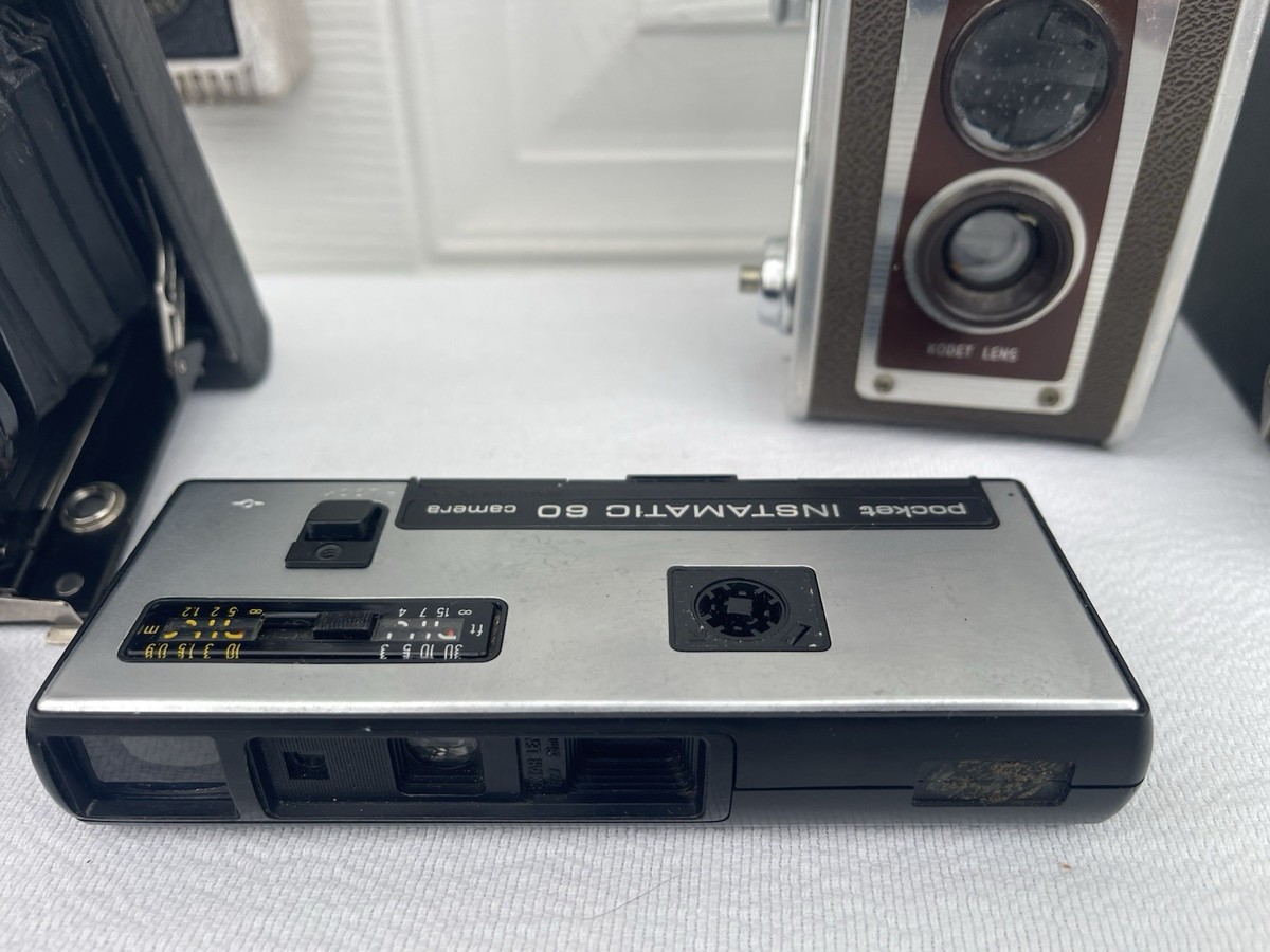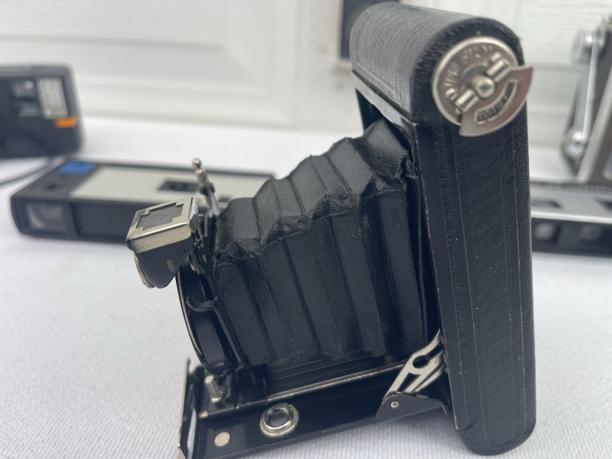 The product is a collection of vintage folding cameras from Eastman Kodak, specifically the Vest Pocket Model B and many more. These cameras are sought after by photography enthusiasts and collectors for their compact and portable design, making them ideal for capturing moments on-the-go. The Eastman brand is known for producing high-quality photographic equipment, and the Vest Pocket series is no exception, offering a durable and reliable option for those interested in shooting with a classic folding camera.
