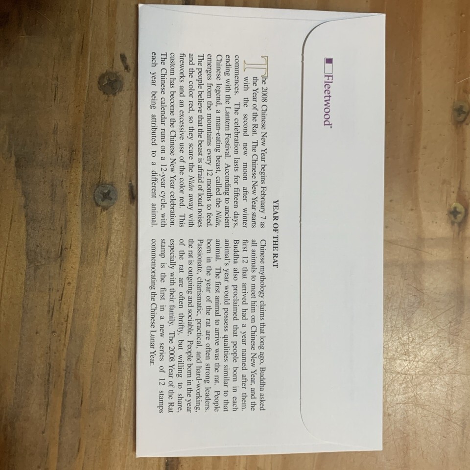 The product is a set of stamps, first days, and postal stationery issued in the United States in 2008 to commemorate the Year of the Rat. These items are of ungraded quality and have not been certified. They are part of the first day of issue series, making them a valuable collector's item for those interested in philately and commemorating events.
