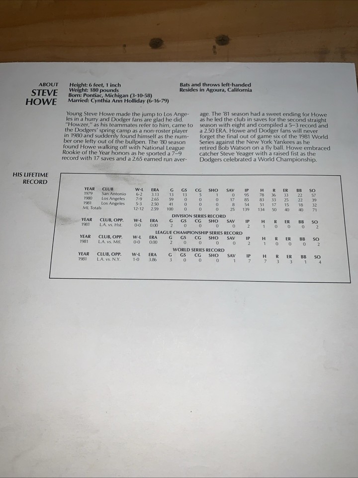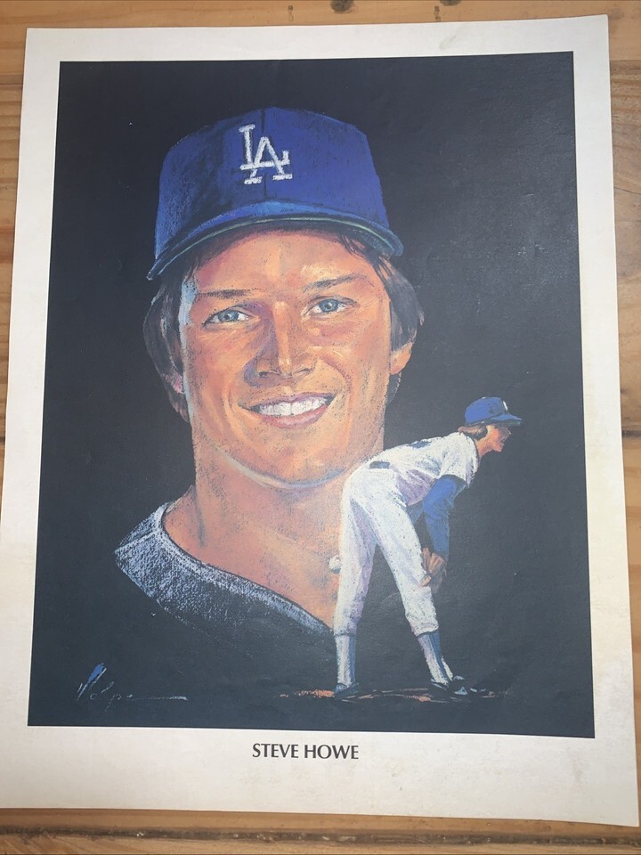 The product is a vintage baseball print portrait of Union 76 Vintage Baller Steve Howe from 1982, featuring a size of 8 1/2 x 11 inches. The print is officially licensed and depicts Steve Howe in his Los Angeles Dodgers team jersey, making it a unique piece of sports memorabilia for fans of baseball and vintage sports collectibles. Made in the United States, this vintage print captures a moment in baseball history with a touch of nostalgia.