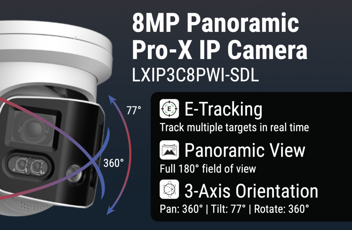 LXIP3C8PWI-SDL PRO-X IP 2x4MP 180 Angle Pano Deterrence 2 Ways Audio Ai Camera