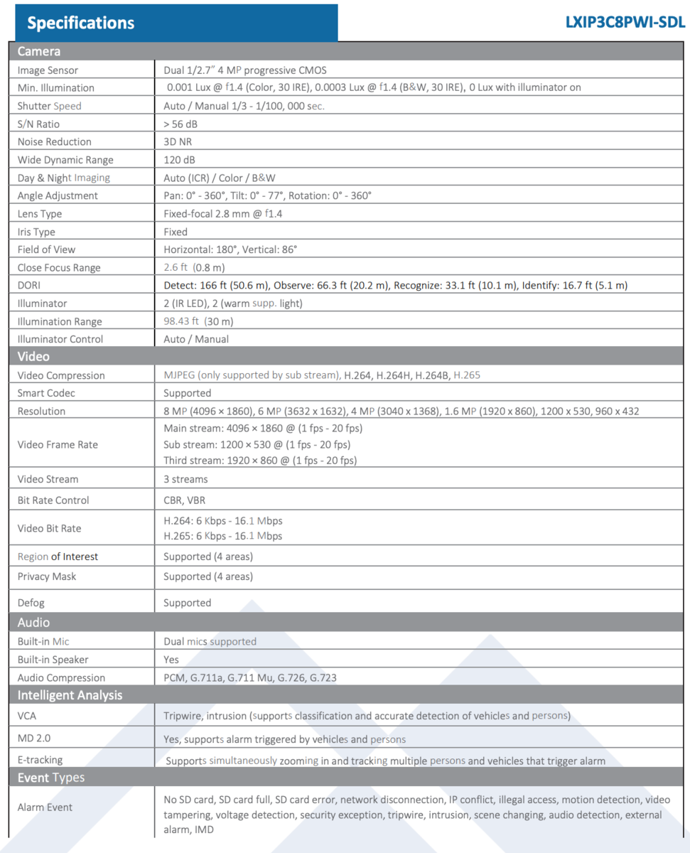 LXIP3C8PWI-SDL PRO-X Ip 2x4MP 180 Angle Pano and similar items