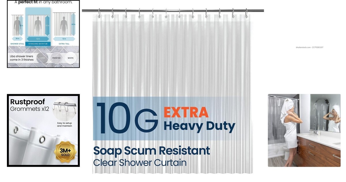 Non-Toxic Waterproof PEVA Shower Curtain with Grommets - 72x72 Modern Style