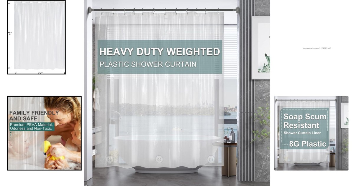 Clear Waterproof Shower Curtain Liner 72x72 and 50 similar items