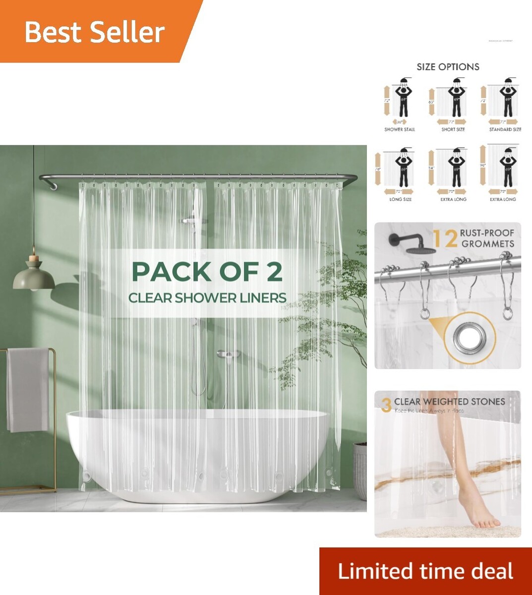 Elegant Clear Shower Curtain Liner - 72 x 72 and similar items