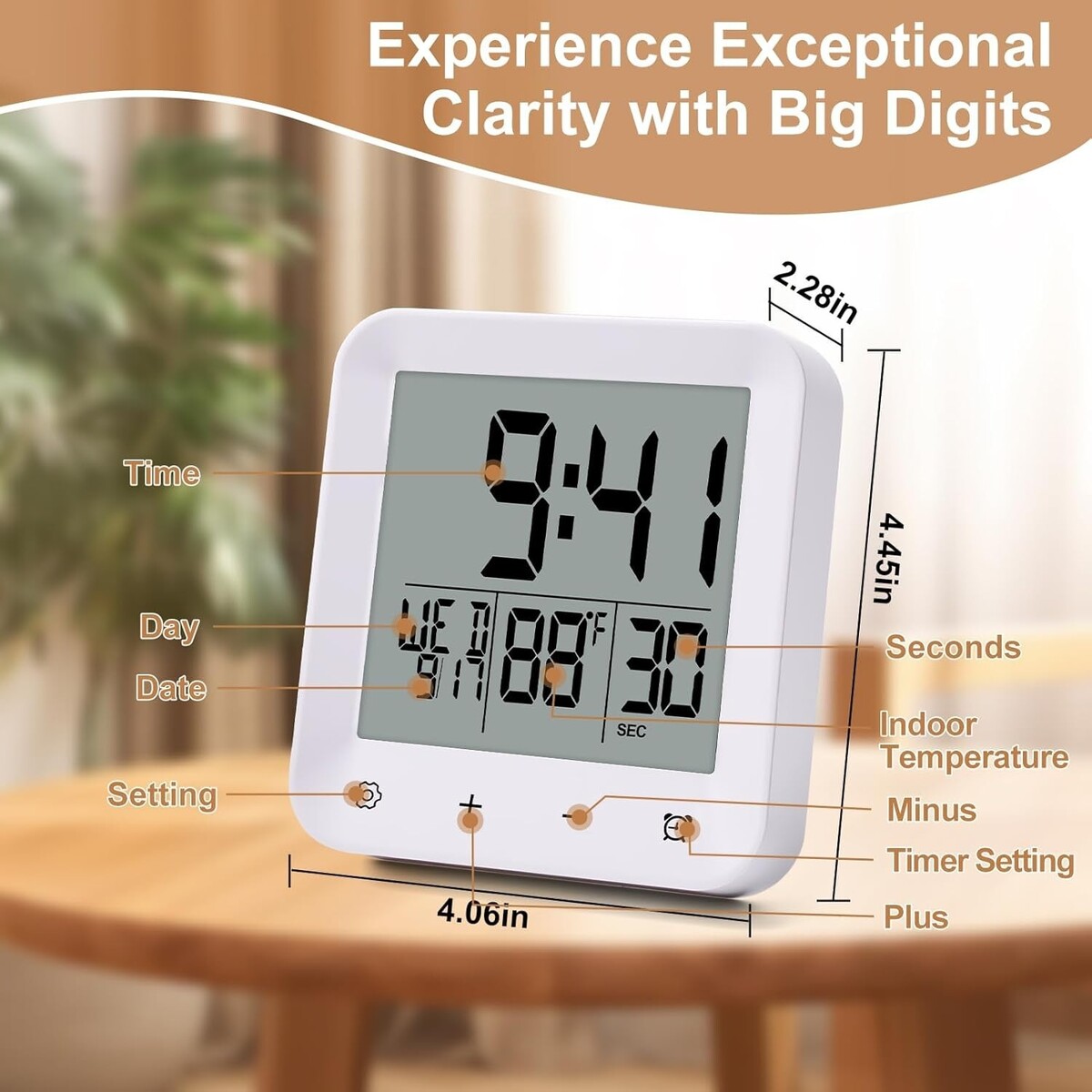 Versatile Wall or Table Clock - Waterproof Digital Display with Timer Function