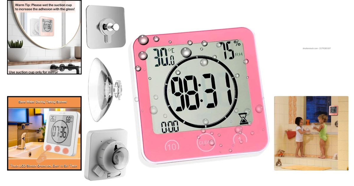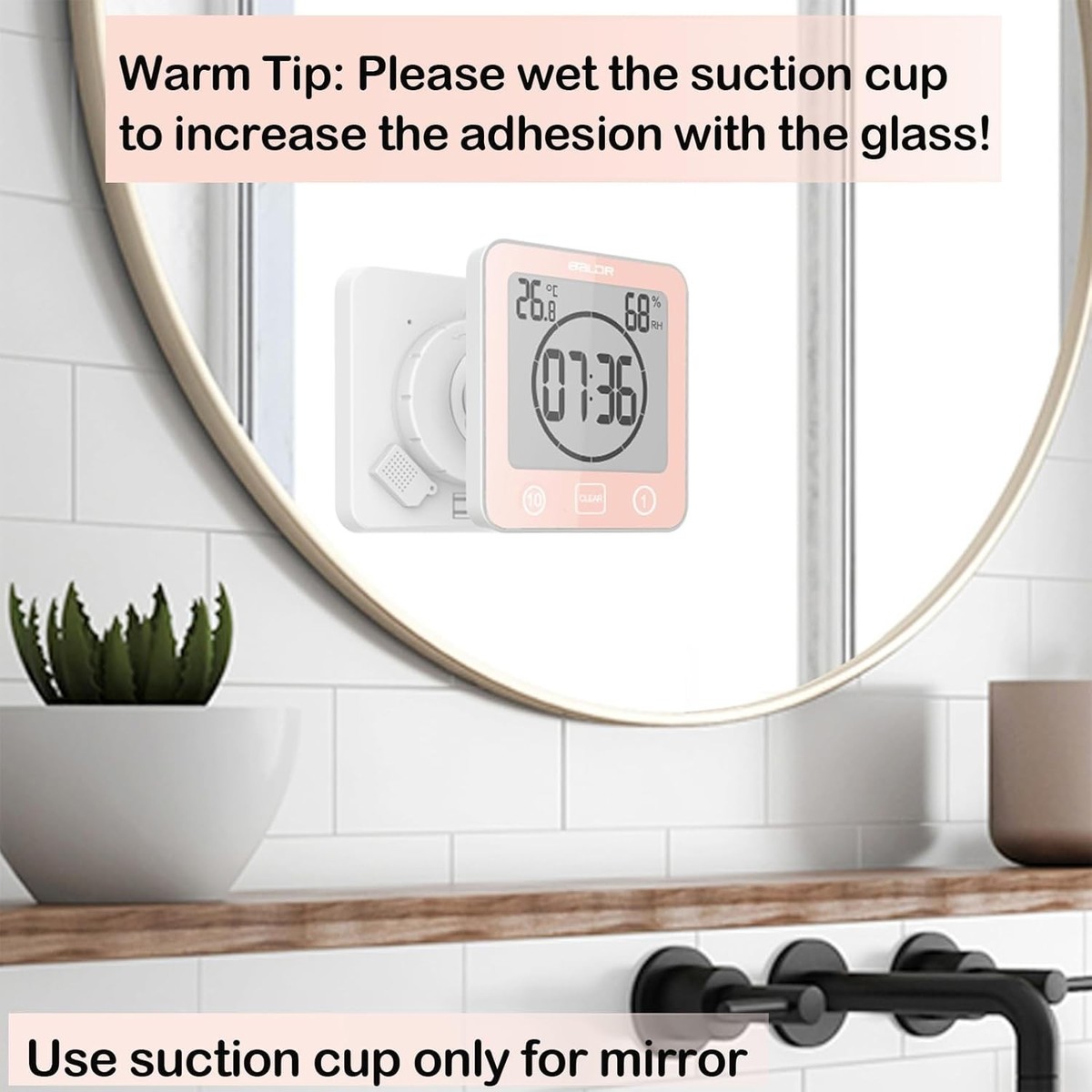 Digital Humidity & Temperature Clock - Pink Wall Clock with Timer for Bathrooms