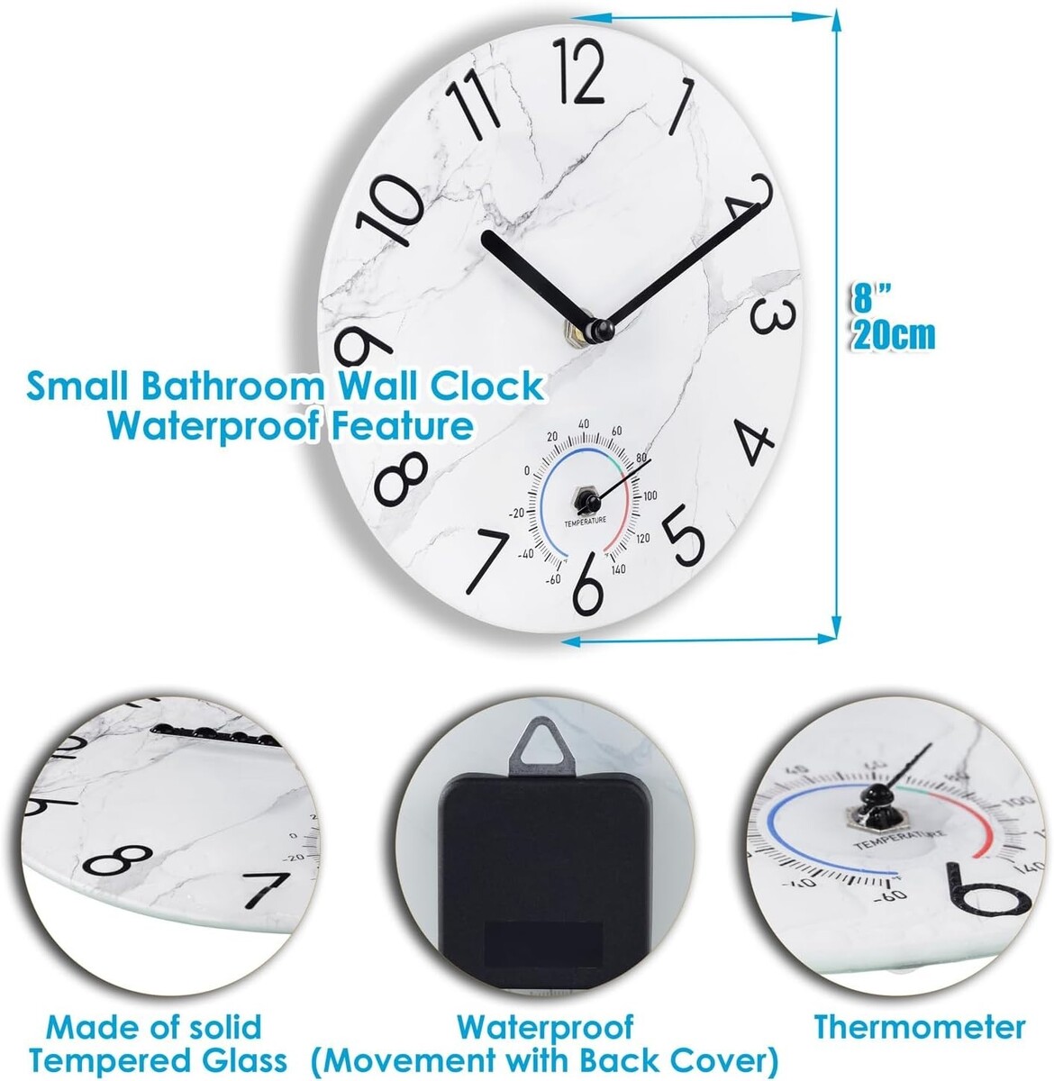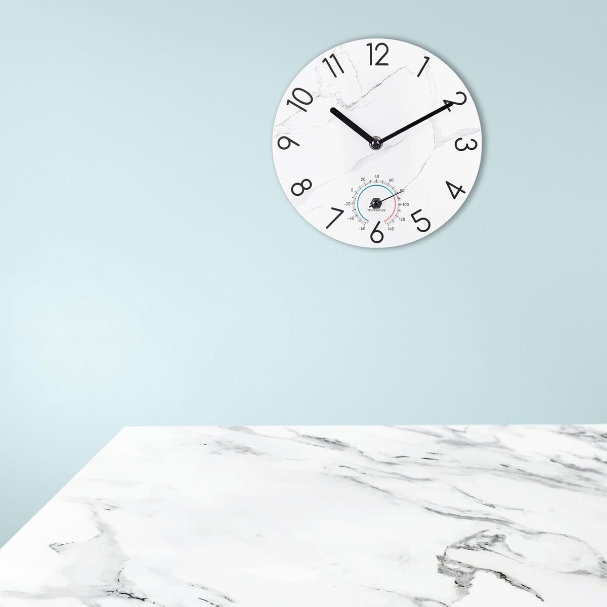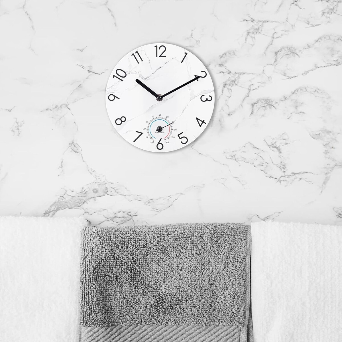 Modern Waterproof Marble Wall Clock - 8 Inch Silent Thermometer for Bathroom