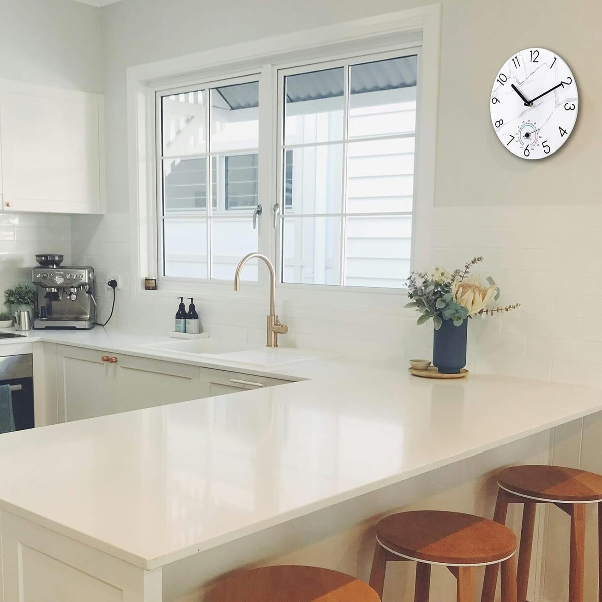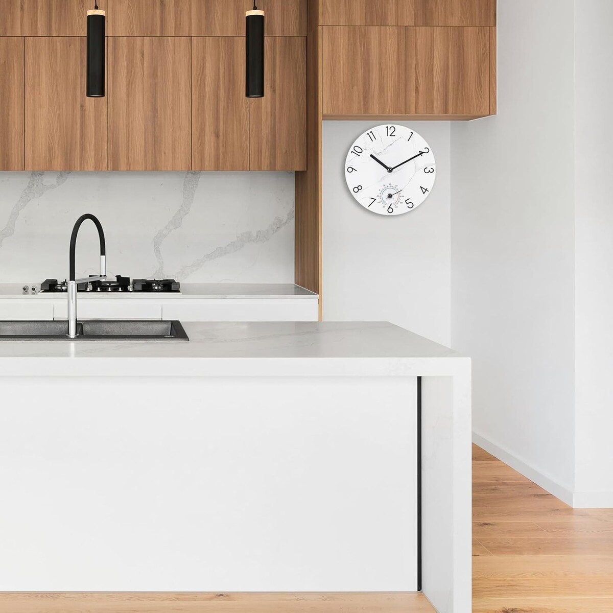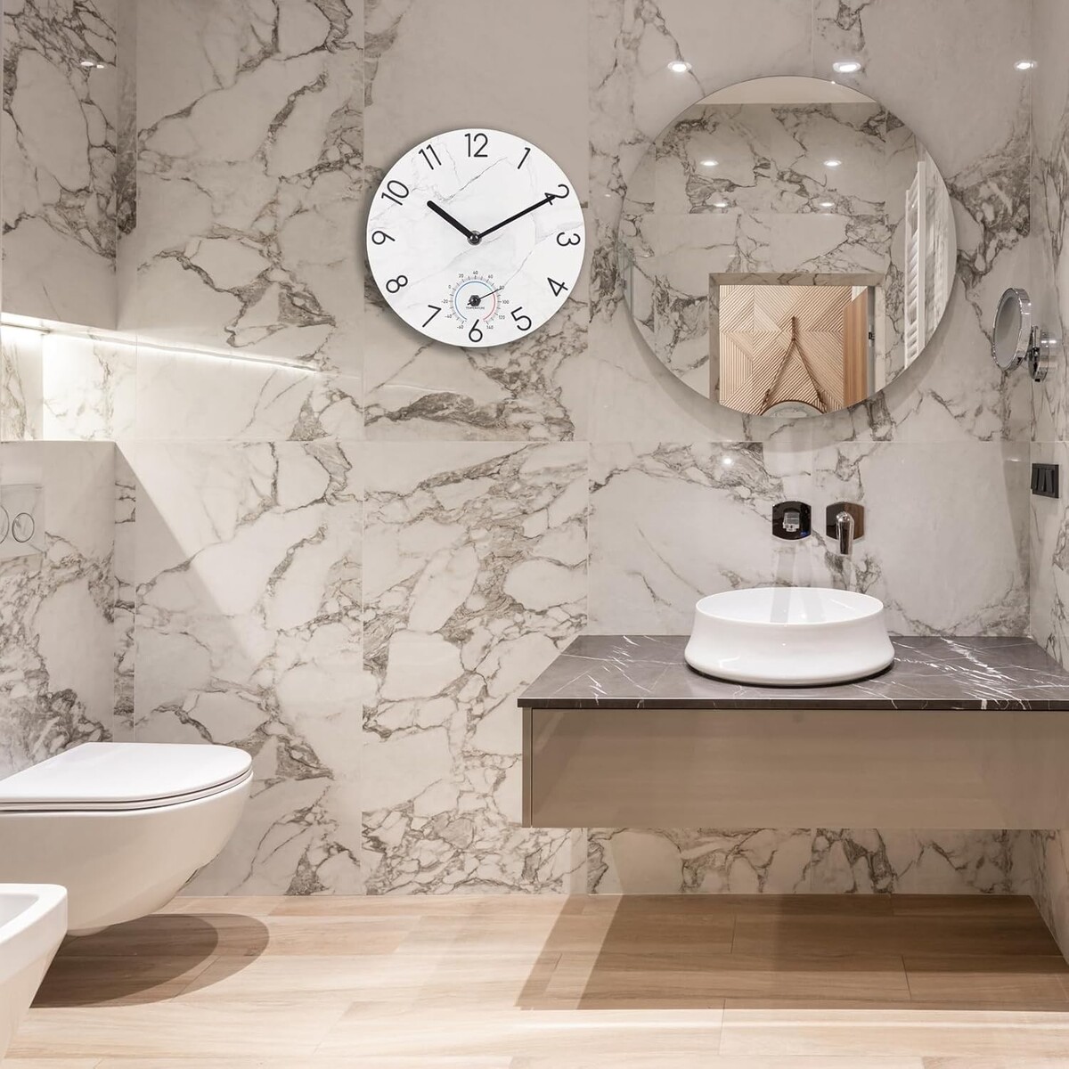 Modern Waterproof Marble Wall Clock - 8 Inch Silent Thermometer for Bathroom