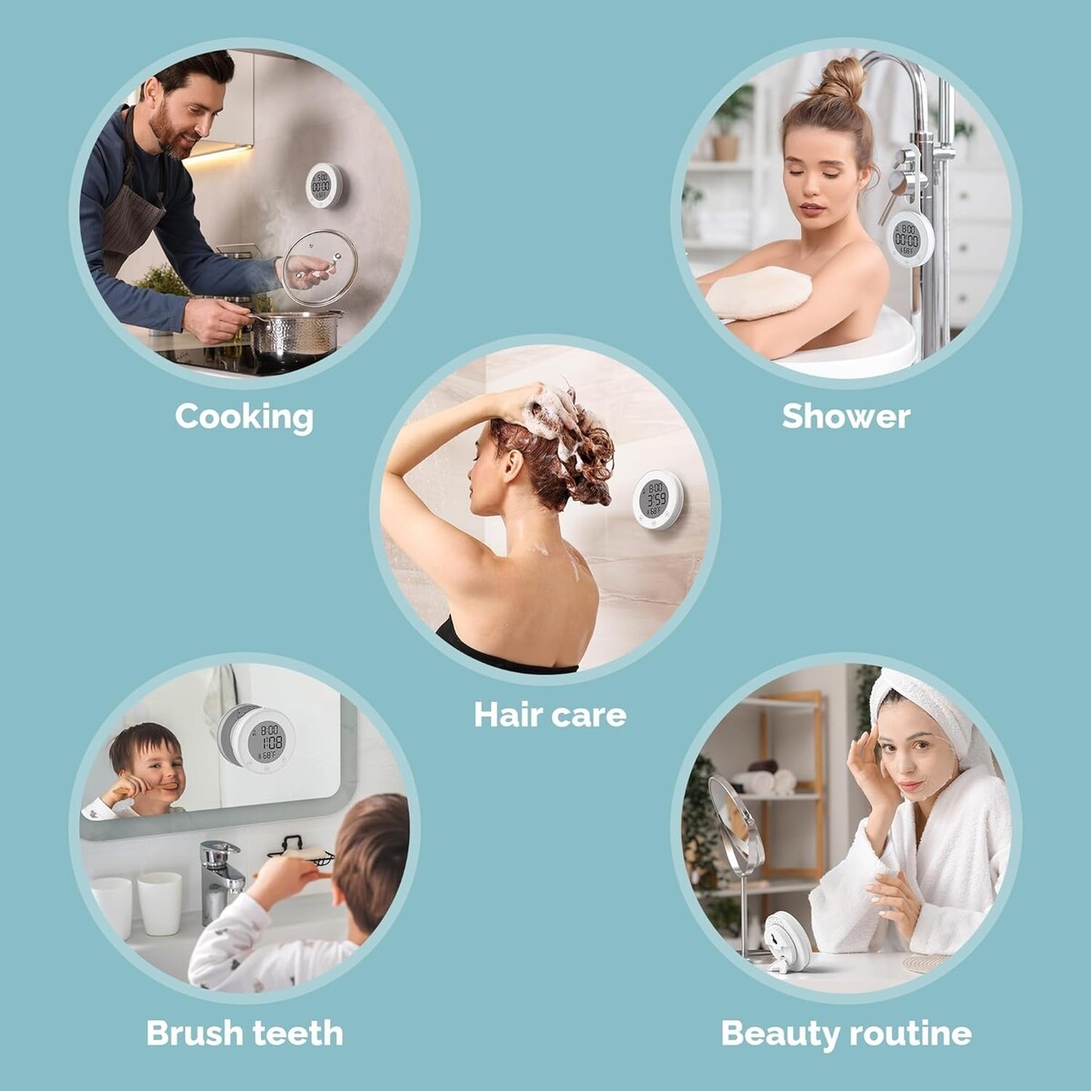 Multi-Display Waterproof Shower Timer Clock - Digital with Silent Operation