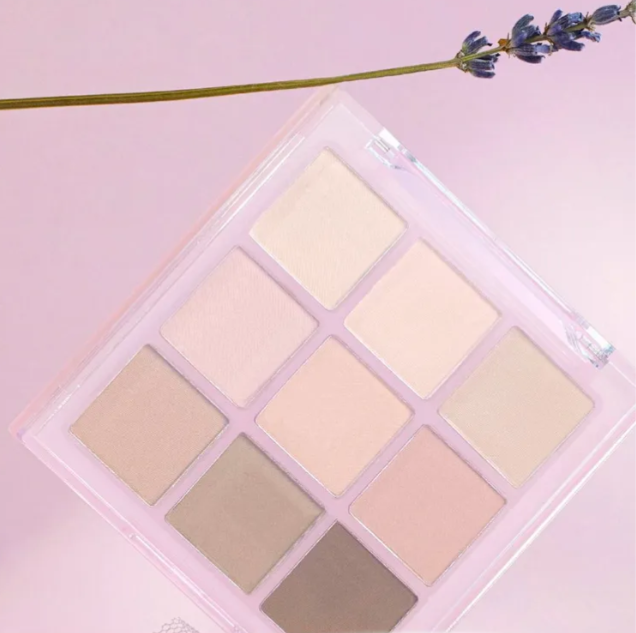 XELVORA Eyeshadow palette with 9 matte nude shades.