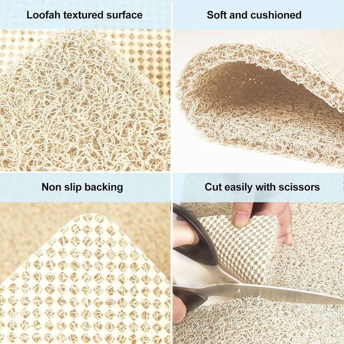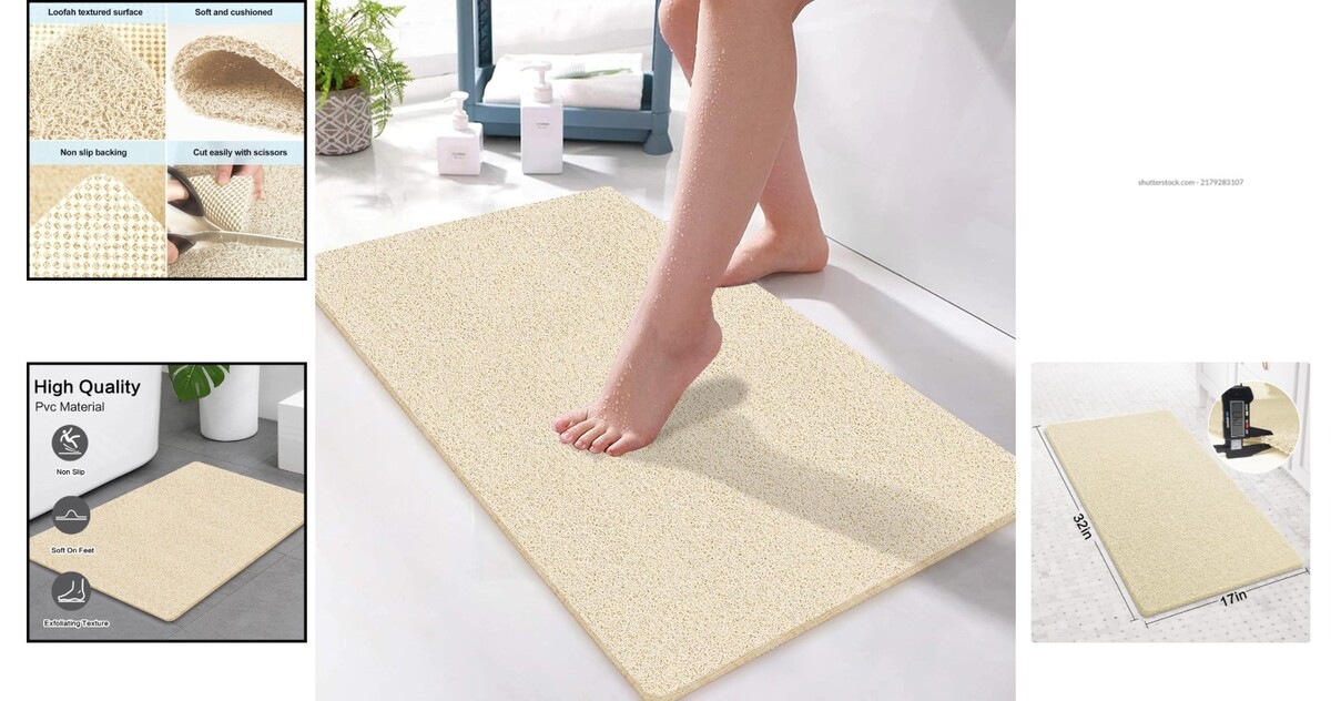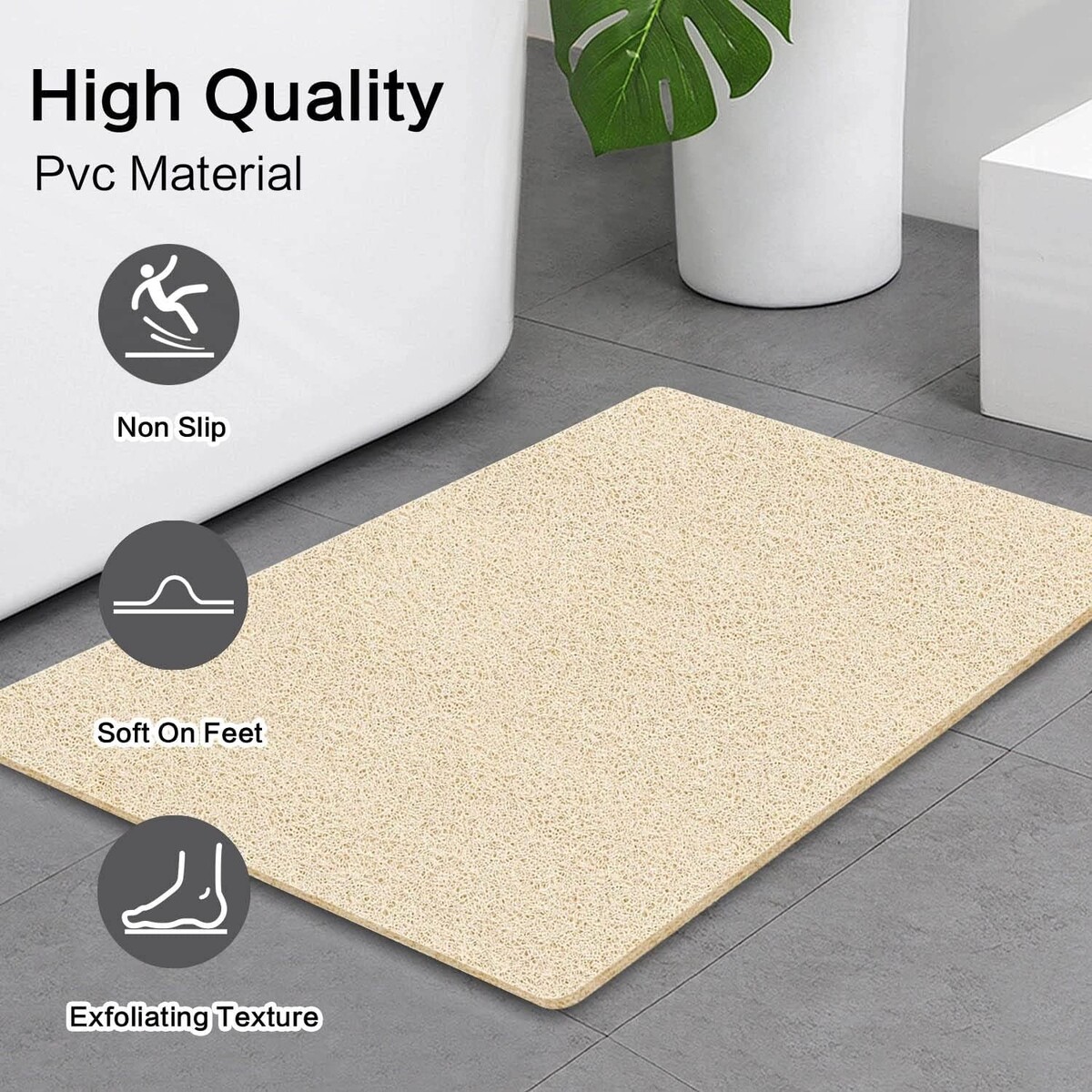Quick-Drying 32x17 Inch Shower Mat - Non-Slip Loofah Design in Elegant Beige