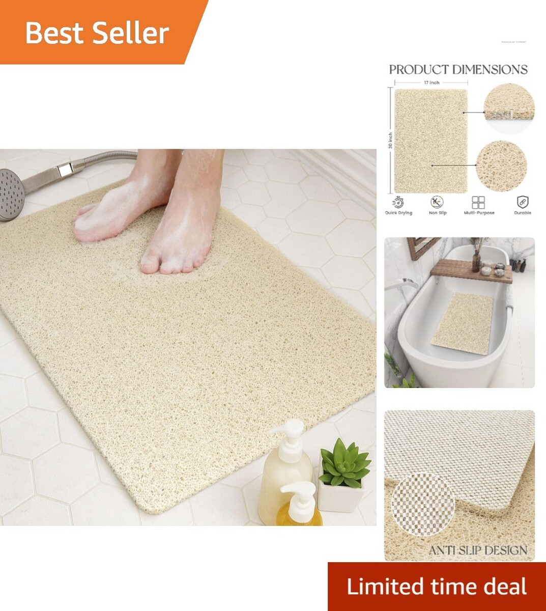 Quick Dry Non-Slip Bathroom Mat with Loofah and 49 similar items