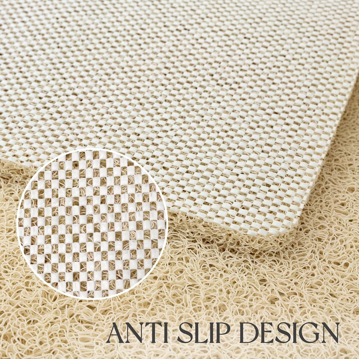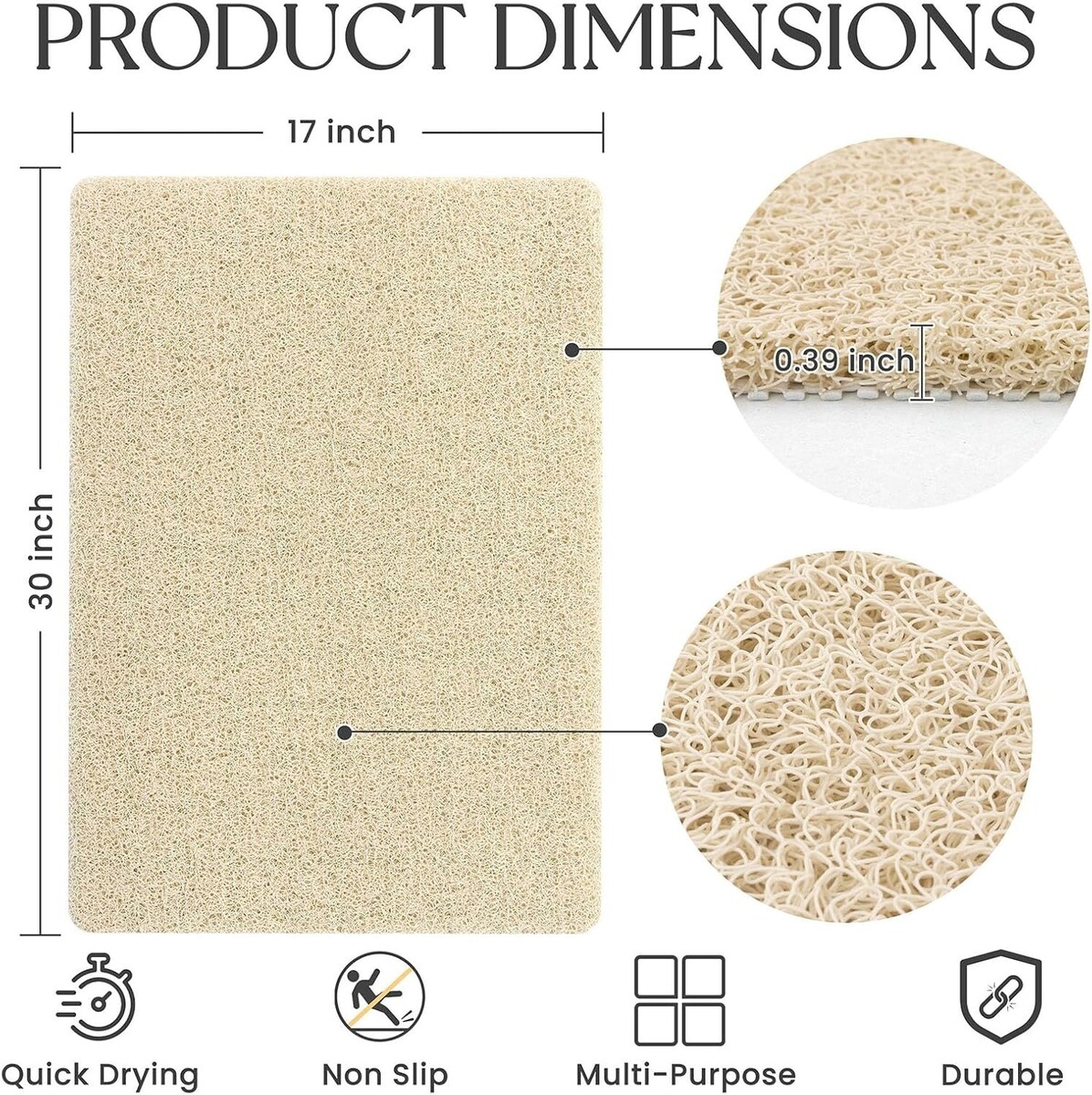 Quick Dry Non-Slip Bathroom Mat with Loofah Texture - 30x17 Inch Size in Beige