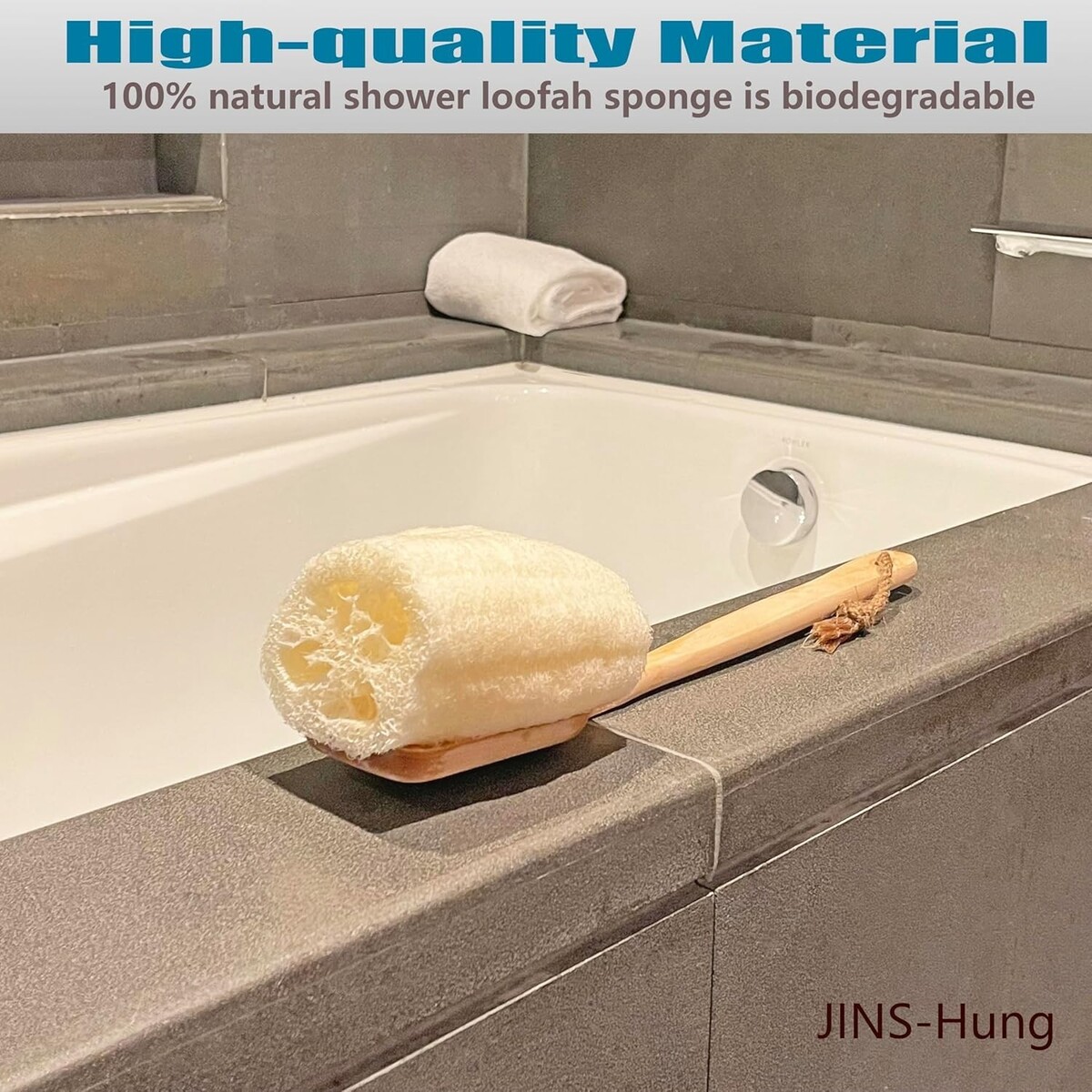 2-Pack Natural Loofah Bath Brushes with Long Wooden Handle - Gentle Exfoliation