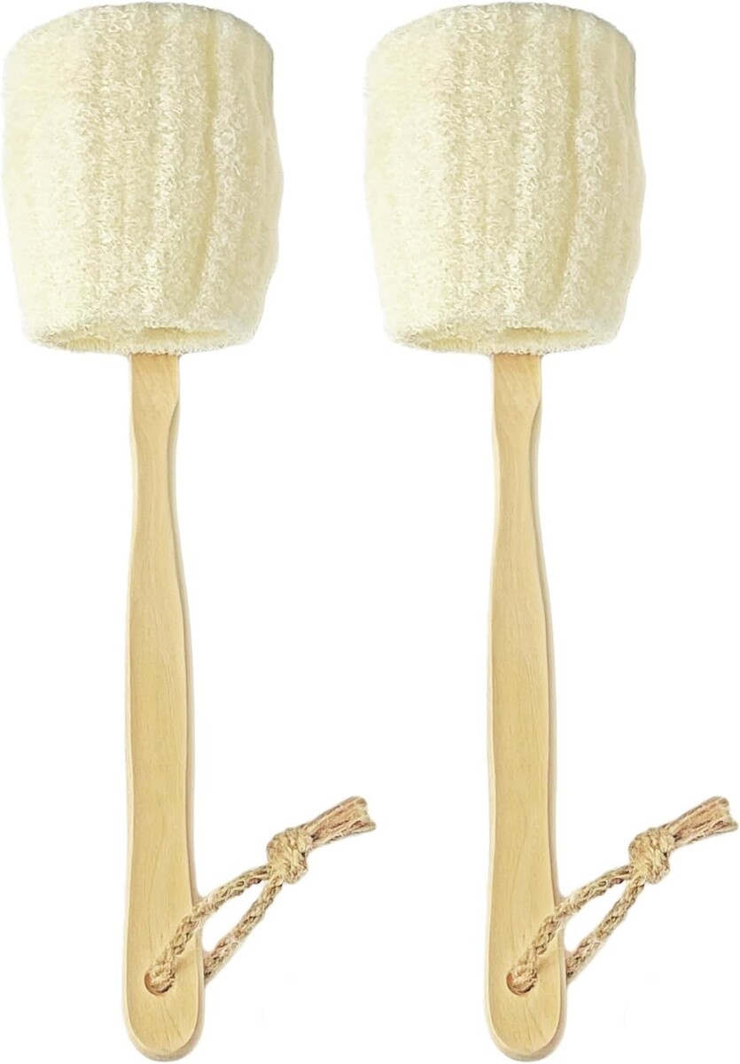 2-Pack Natural Loofah Bath Brushes with Long Wooden Handle