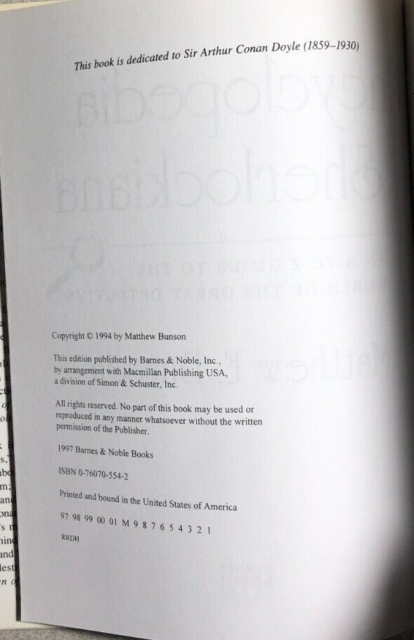 ENCYCLOPEDIA SHERLOCKIANA by Matthew E Bunson (1994) B&N HC