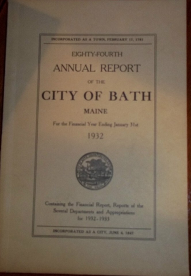 1932 ANNUAL REPORT of the City of Bath, and 32 similar items