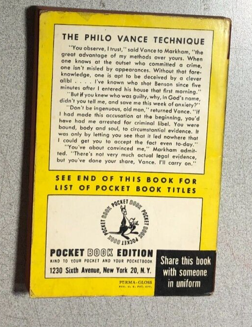THE BENSON MURDER CASE by S.S Van Dine (1945) Pocket Books mystery paperback 1st