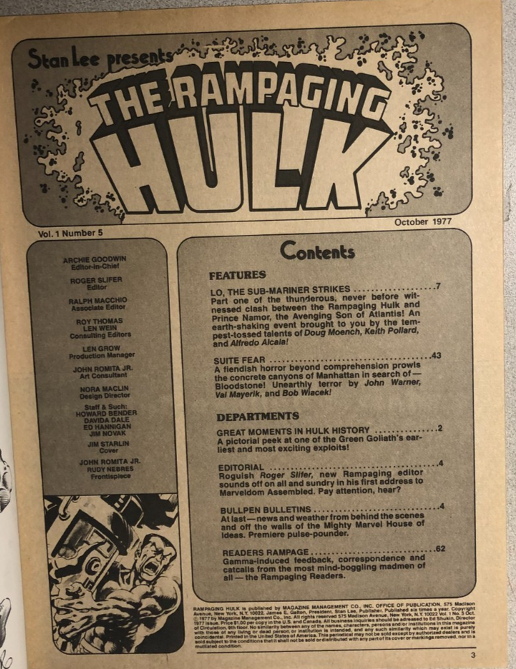 THE RAMPAGING HULK #5 (1977) Marvel Comics B&W magazine FINE