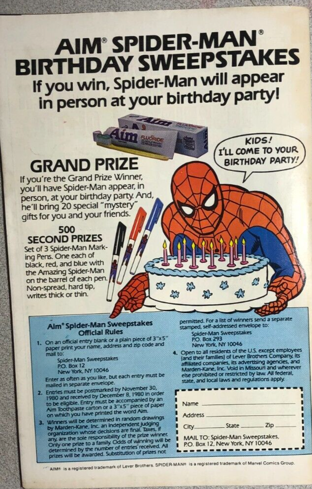 AMAZING SPIDER-MAN (1980) Marvel Comics Aim promotional comic VG+/FINE-