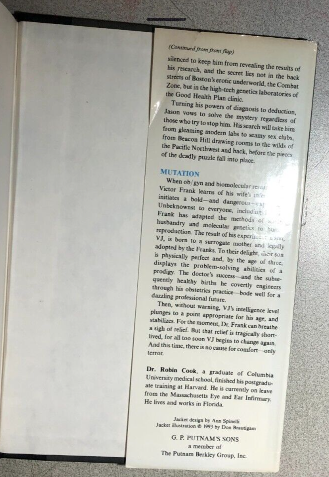 OUTBREAK * MORTAL FEAR * MUTATION three by Robin Cook (1993) Putnam's hardcover