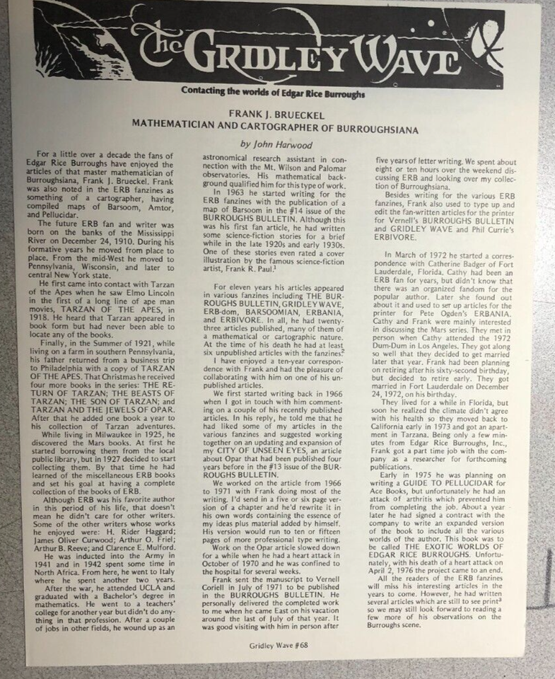 THE GRIDLEY WAVE #68 (1975) 4-page Edgar Rice Burroughs Tarzan fanzine