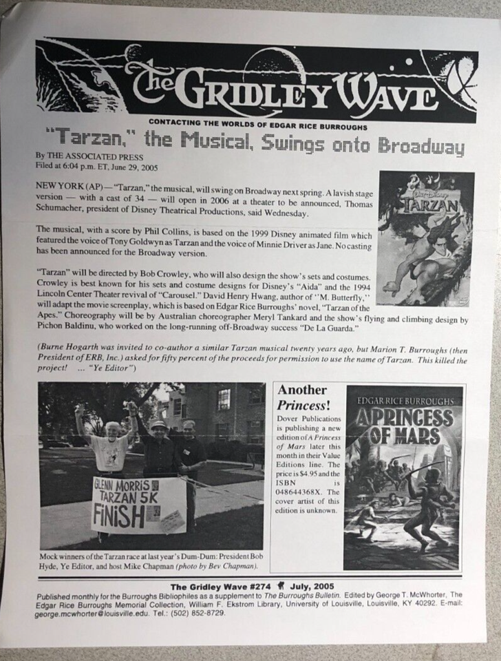 THE GRIDLEY WAVE #274 (2005) 2-page Edgar Rice Burroughs Tarzan fanzine