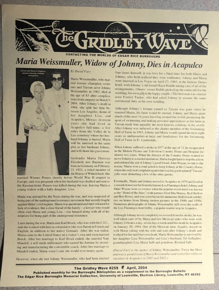 THE GRIDLEY WAVE #259 (2004) 2-page Edgar Rice Burroughs Tarzan fanzine
