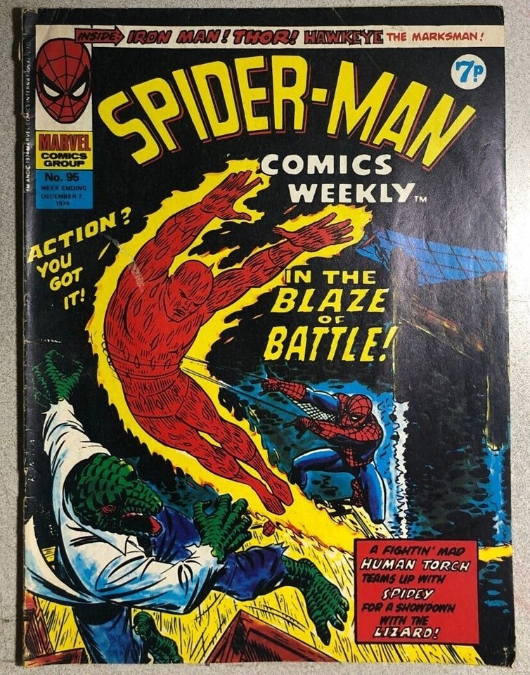 SPIDER-MAN COMICS WEEKLY #95 (1974) Marvel UK Iron Man Thor Torch VG/VG+