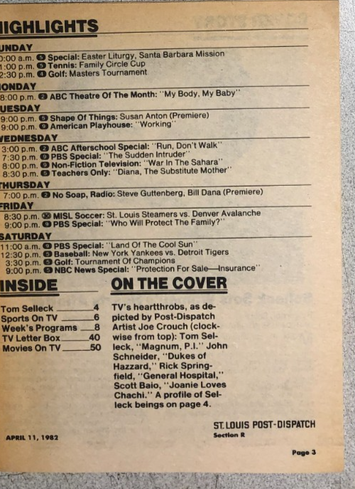 TV MAGAZINE St Louis (MO) Post-Dispatch April 11, 1982 Tom Sellick, Baio cover