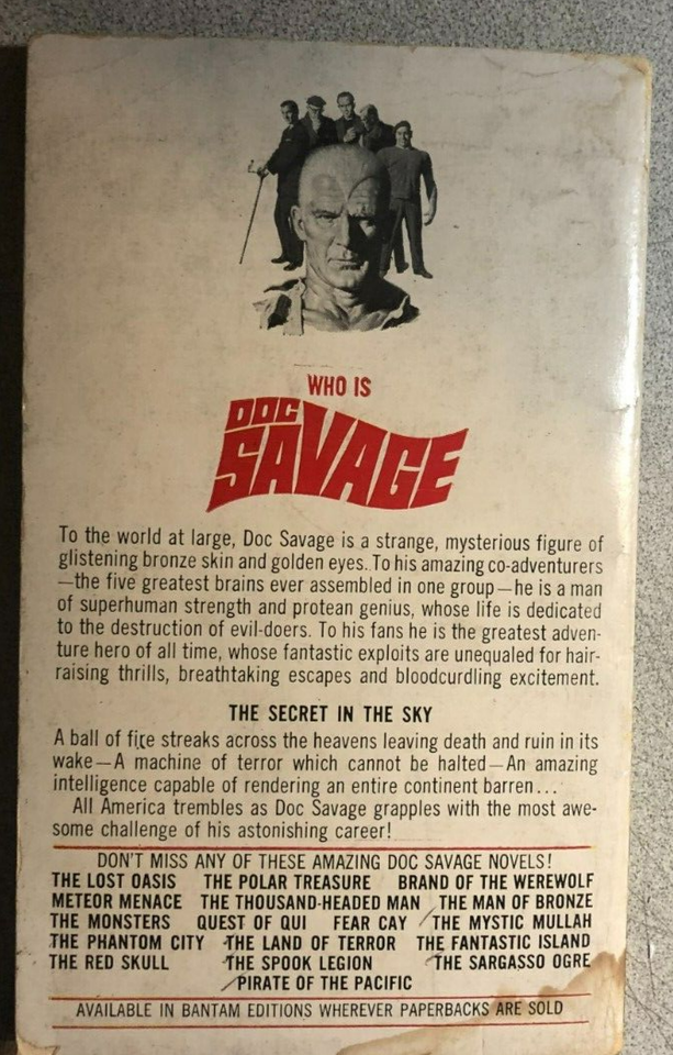 DOC SAVAGE #20 The Secret in the Sky by Kenneth Robeson (1967) Bantam pb 1st
