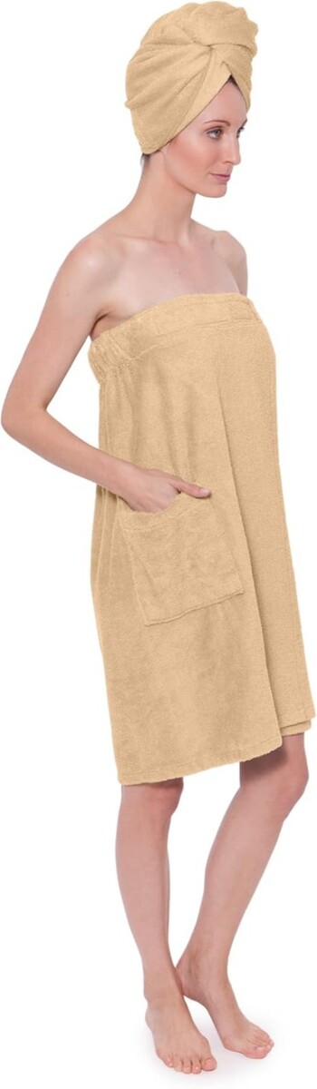 Comfortable Women's Bath Wrap & Hair Towel Set - Large/X-Large, Almond Shade
