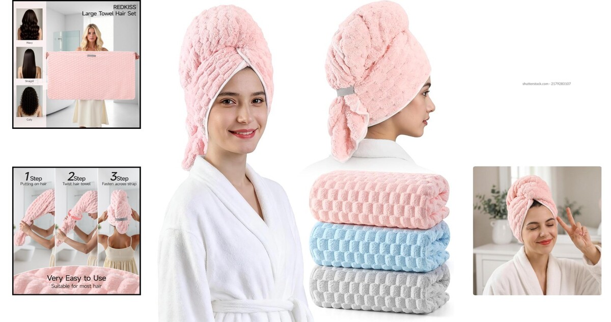 Luxury Microfiber Hair Towels - 24x42 inch Turbans for Fast Drying & Softness