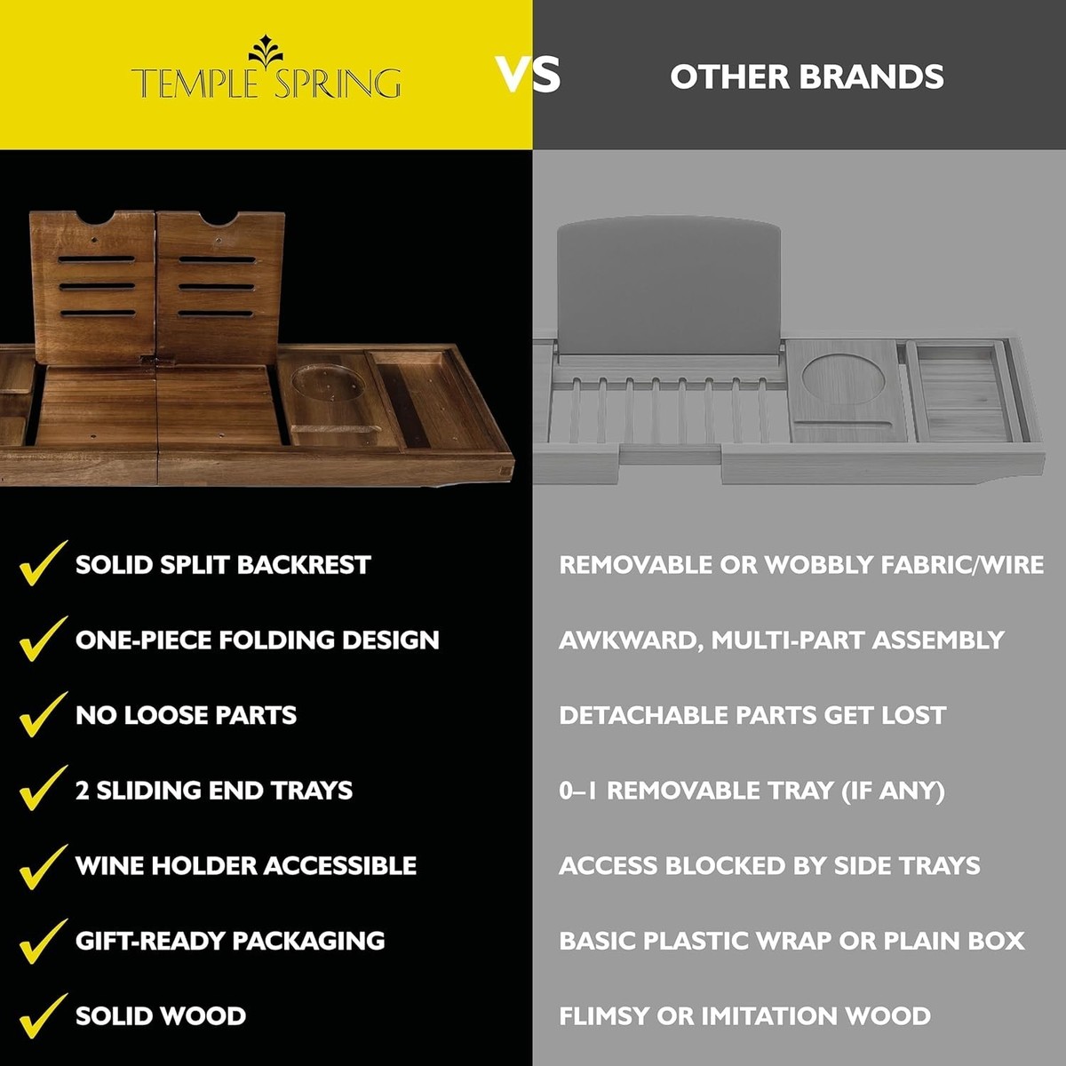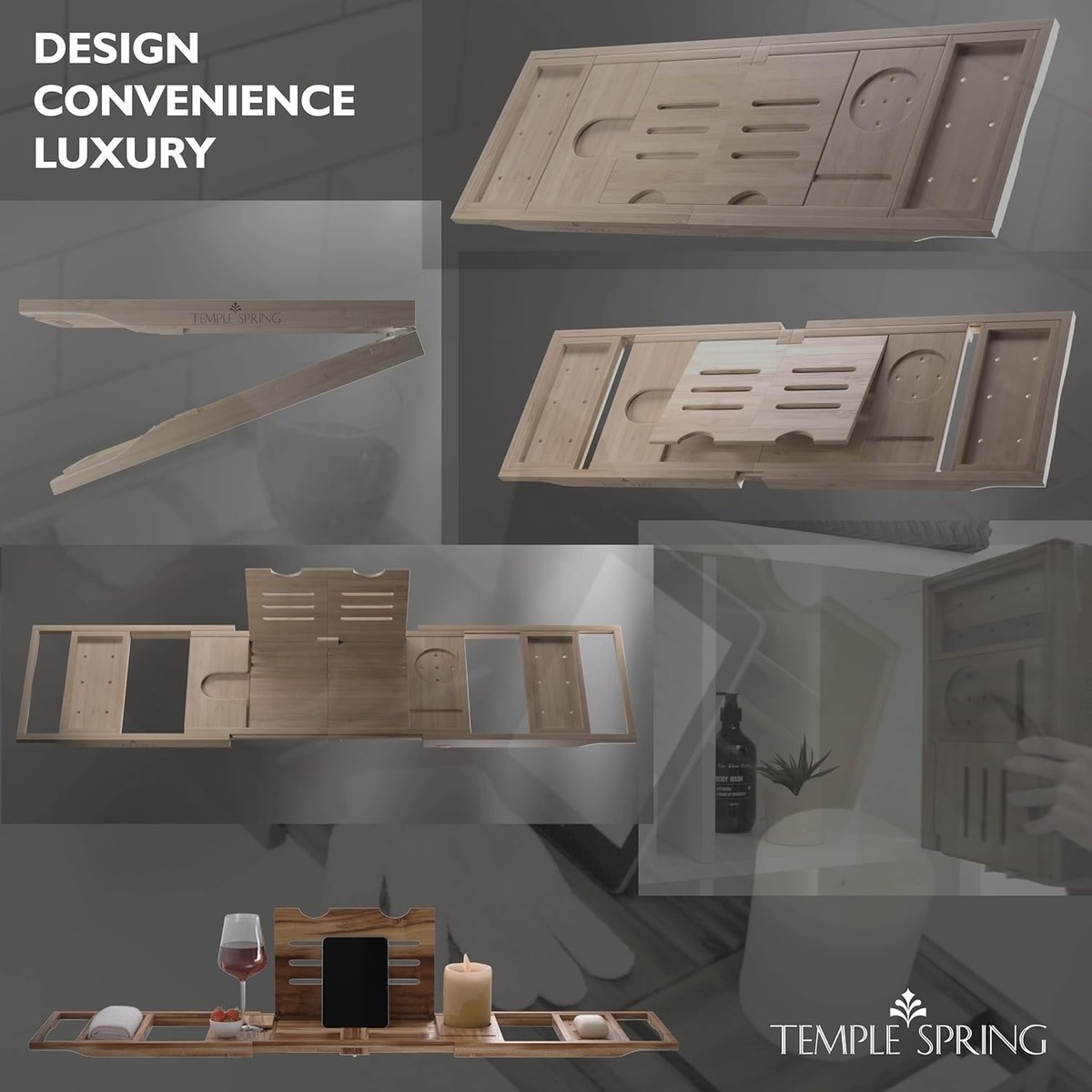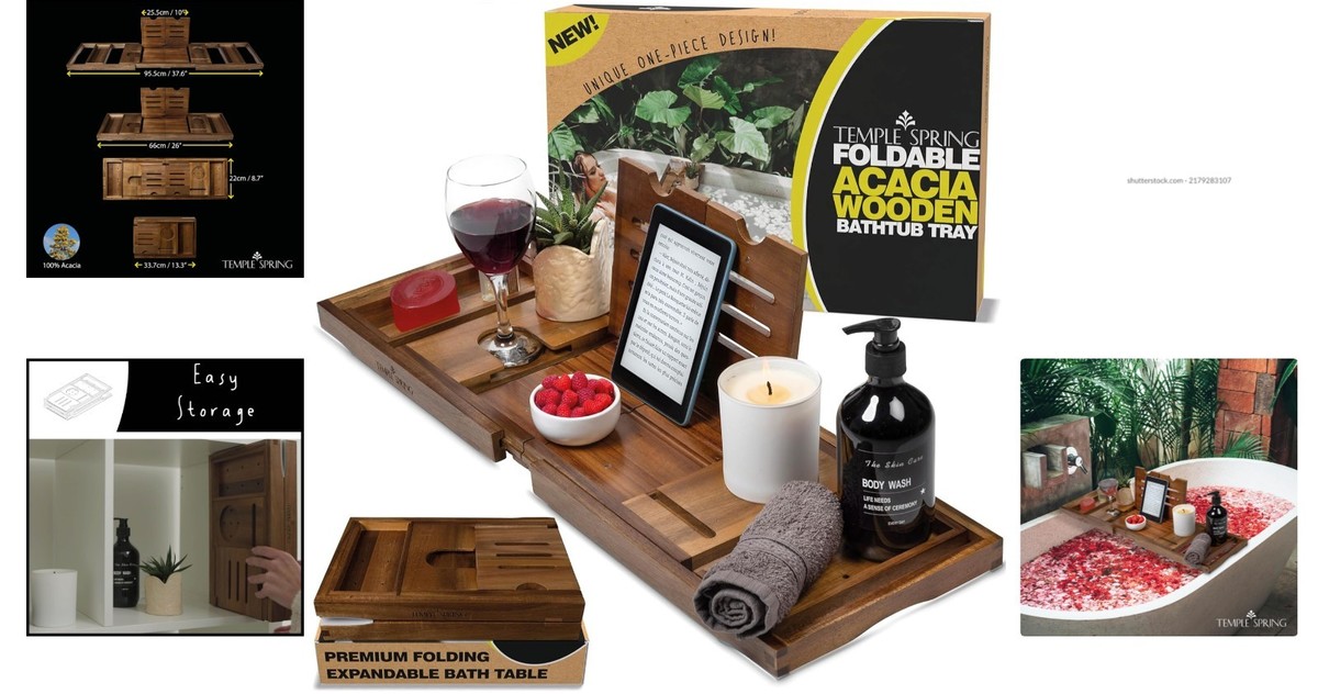 Unique Rustic Bamboo Bathtub Tray with Wine and Book Holders – Gift Perfect
