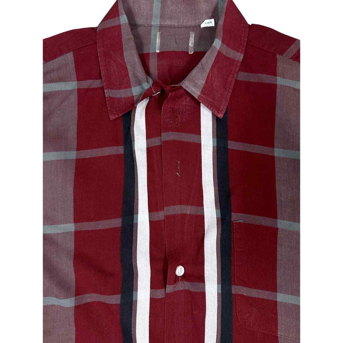 VTG 1950s Maroon/Gray Plaid Loop Collar 4 Button Shirt w/ Blk/Wht Stripe Sz L