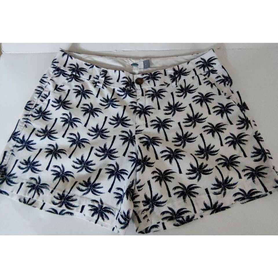 Old Navy Womens White Shorts Blue Palm Trees Cotton Size 2