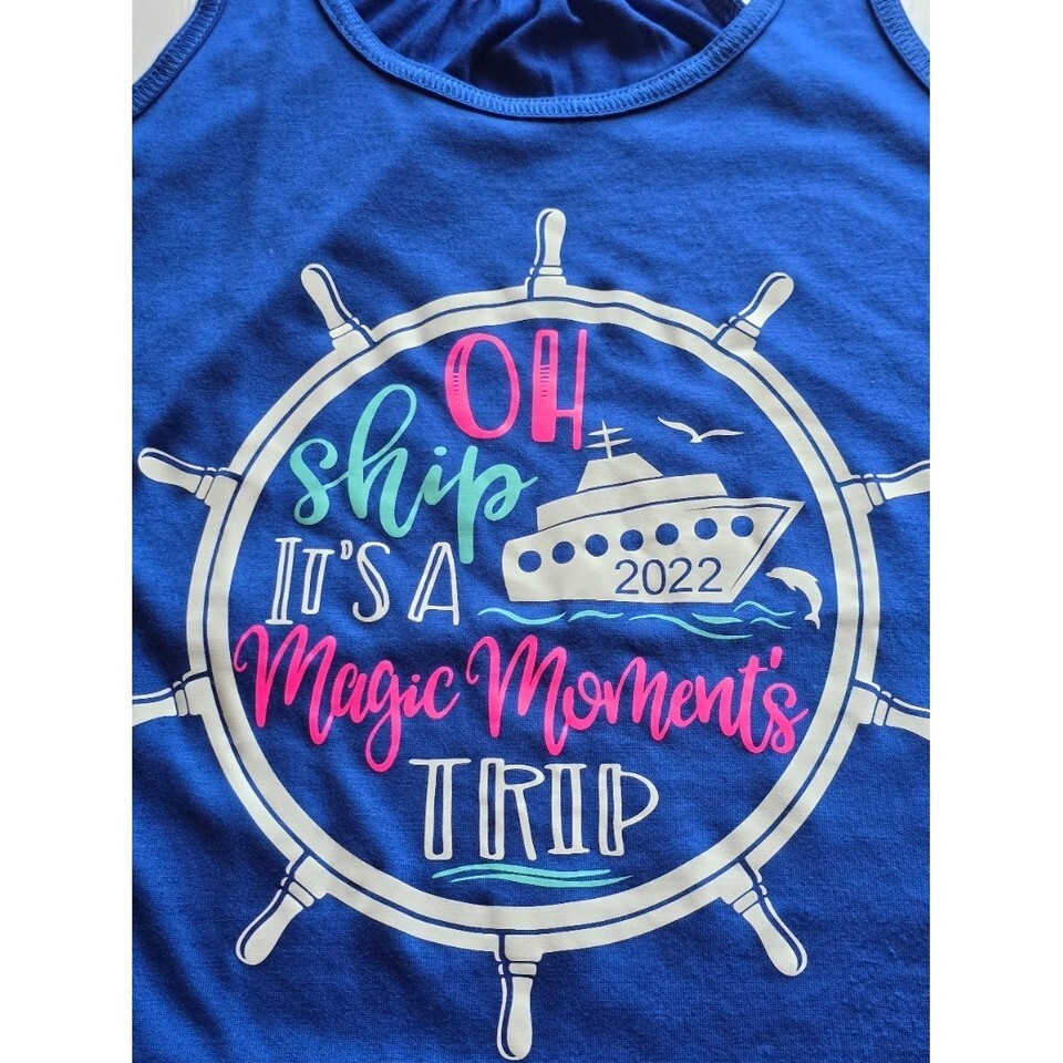 Keywords: cruise, vacation, summer, graphic tee, racerback, flowy, travel, ship, magic, moments, trip, themed, boat