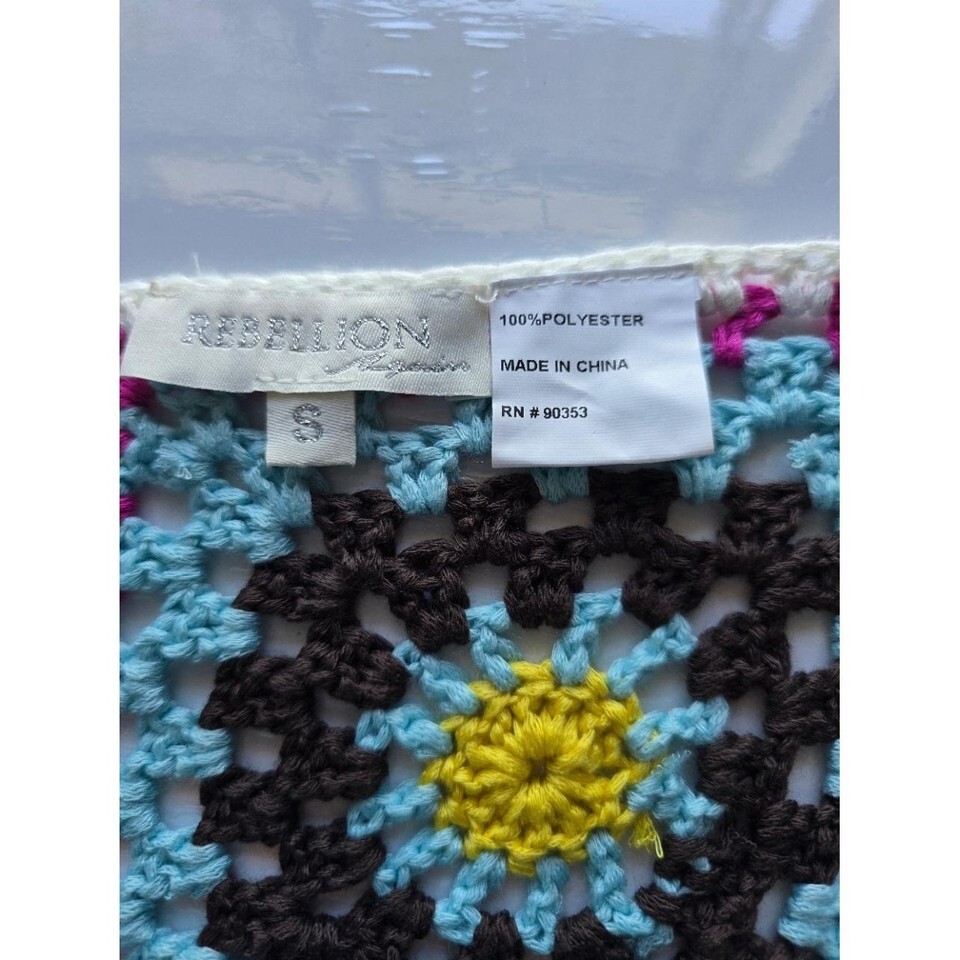 Rebellion Crochet Fringe Tank Top Boho Festival Sun Flower Blue White Pink S