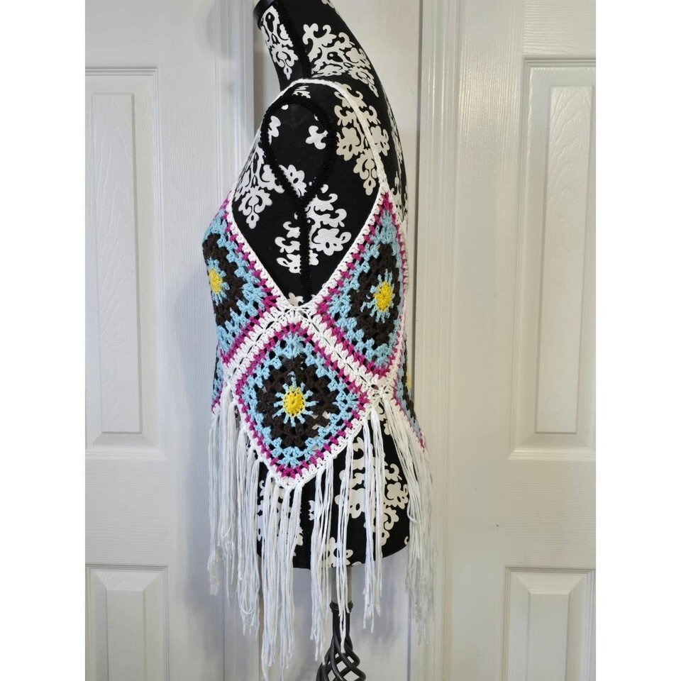 Keywords: crochet, fringe, boho, festival, granny square, sunflower, vintage, hippie, summer, beachwear, vacation, statement piece, handmade look
