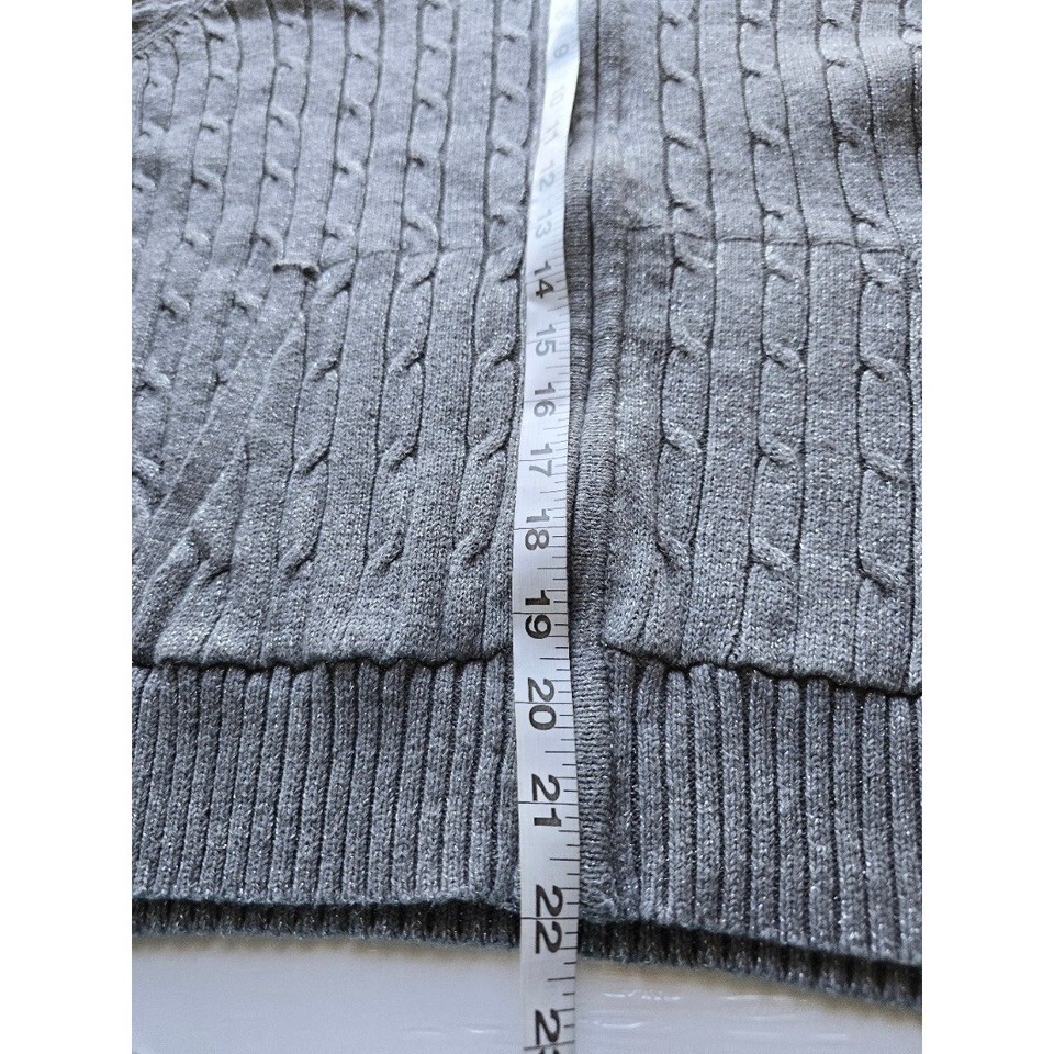 Croft & Barrow Petite Cable Knit Zip Up Sweater Gray Metallic Sparkle Casual
