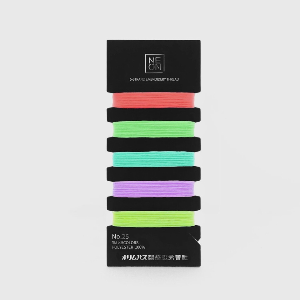 Set Includes: 5 colors of Neon No. 25 Olympus Polyester Embroidery Thread.