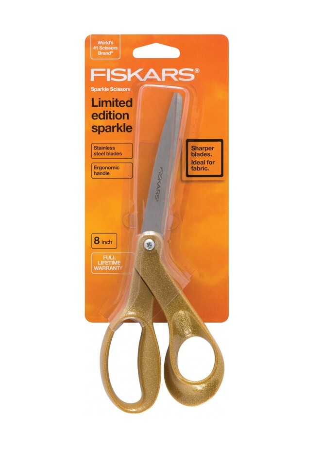 Fiskars Premier 8 Inch Bent Sparkle Scissors Gold.