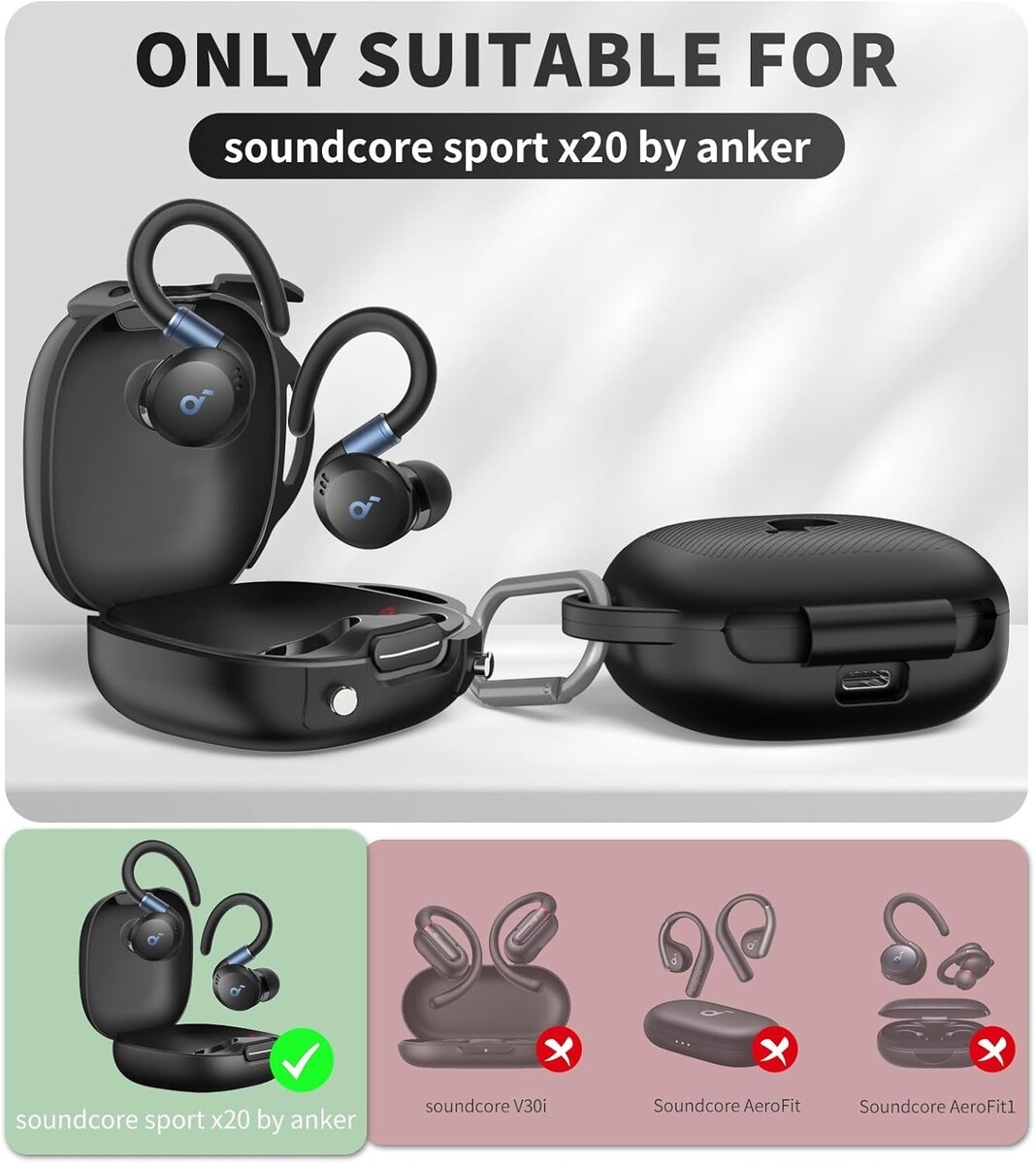 ?Precise Incision?The protective cover is precisely cutting, and reserved charging port, fast charge your Anker Soundcore Sport X20 charging case without remove the charging box cover. Upgrade logo hollowing silicone case designed for Anker Soundcore Sport X20.