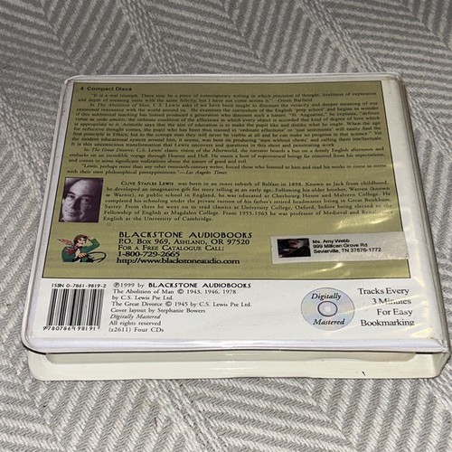 The Abolition Of Man Great Divorce Audiobook C.S. Lewis Blackstone A1. Condition is Good. Shipped with USPS Media Mail.
