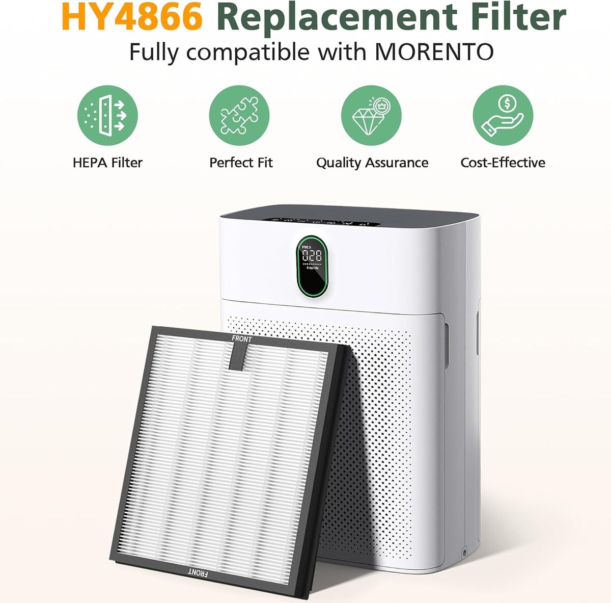 ????????? ????? ????????? ???????????Our HY4866 hepa filters are fully compatible with MORENTO air purifier, includes Fine Pre-Filter, HEPA Filter and Honeycomb Activated Carbon Particles. This system effectively attaches 99.97% of the air particles ranging from small to 0.3 microns, such as dust, smoke, pollen, hair, and odor. so that you can enjoy a new and comfortable air environment all the time.