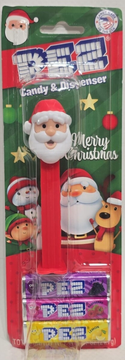 Celebrate the season with this festive trio of PEZ Candy Dispensers! This lot includes three iconic characters in holiday-themed packaging, perfect for stocking stuffers, party favors, or adding to your seasonal PEZ collection. Each dispenser comes sealed with three packs of PEZ candy.