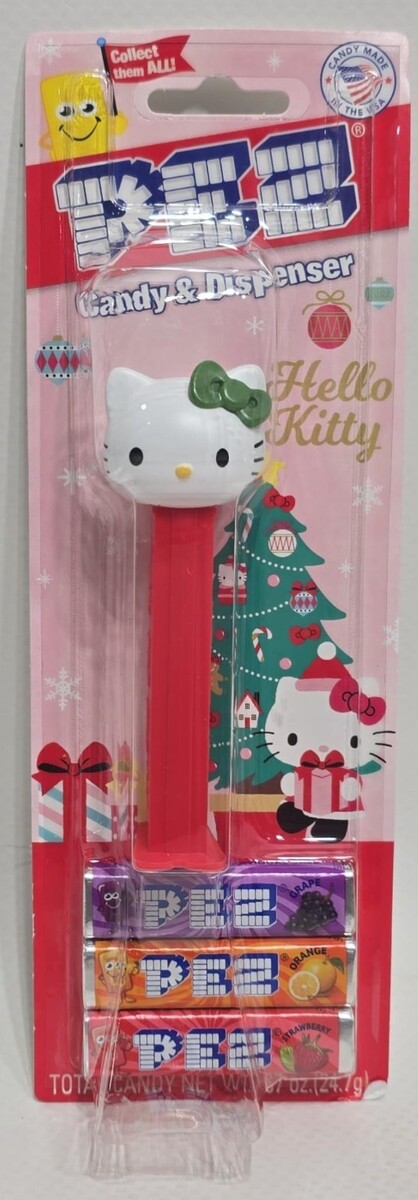 Hello Kitty: Festive pink packaging featuring Hello Kitty with a signature green holiday bow.